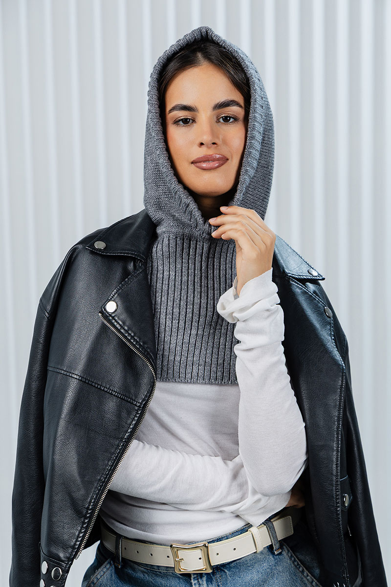 Создайте модный и уютный образ с этим стильным серым капором! Изготовленный из мягкого трикотажа, он не только согреет в прохладные дни, но и станет ярким акцентом вашего лука.
