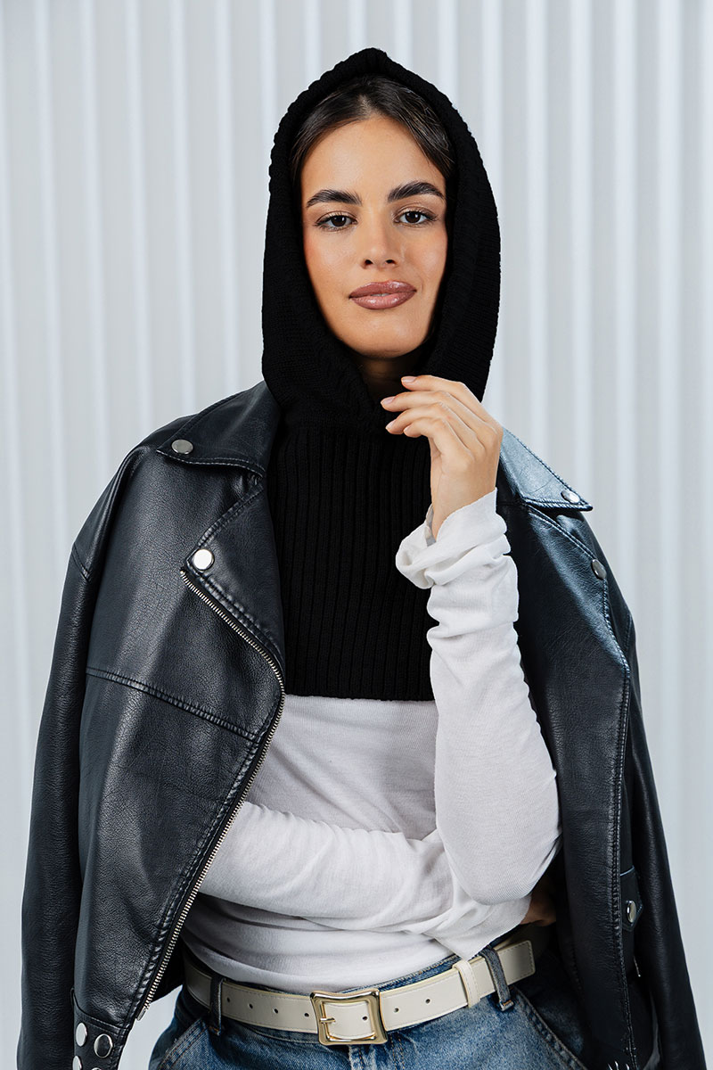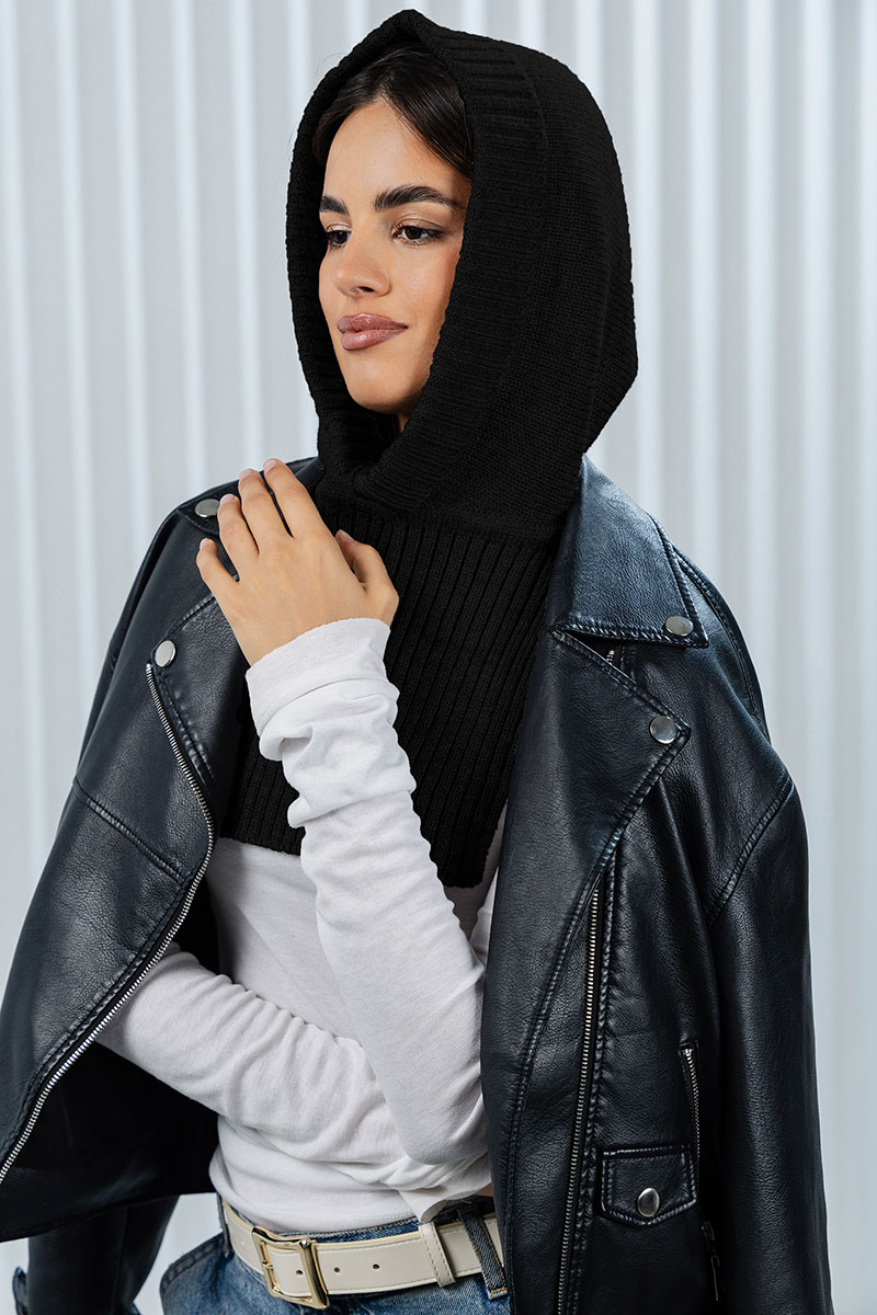 Создайте модный и уютный образ с этим стильным черным капором! Изготовленный из мягкого трикотажа, он не только согреет в прохладные дни, но и станет ярким акцентом вашего лука.