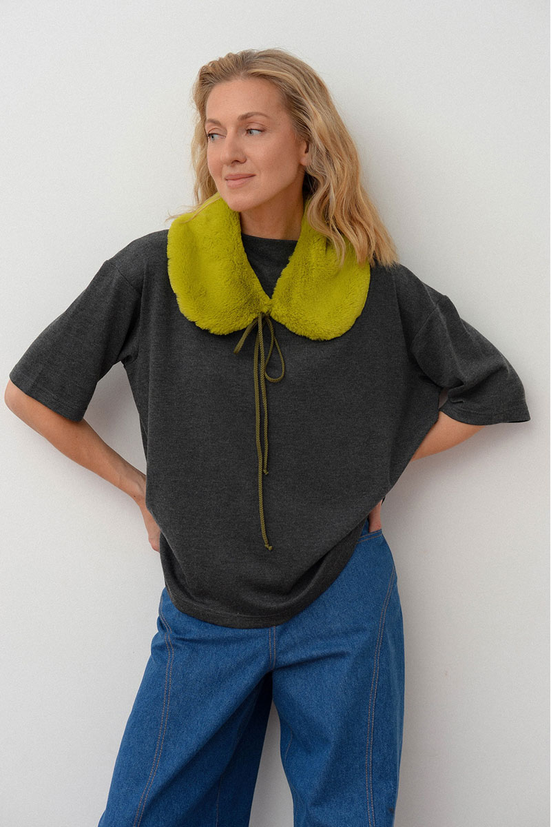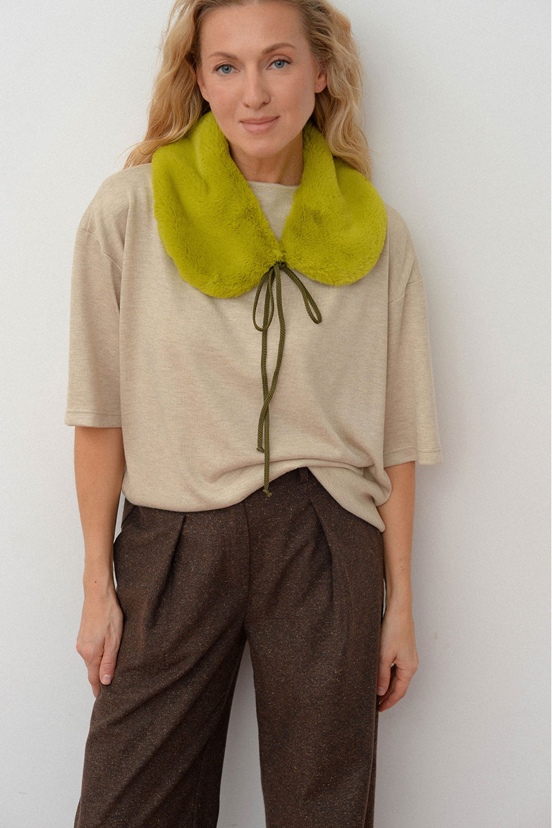 Воротник из итальянского экомеха в невероятно красивом зеленом оттенке шартрез. Добавит свежести и сделает любой образ интересным. Стилизуйте воротник с футболками, водолазками, рубашками и платьями. Дополнен подкладочной тканью из твила. Идеально сочетается с блузами из нашей коллекции.