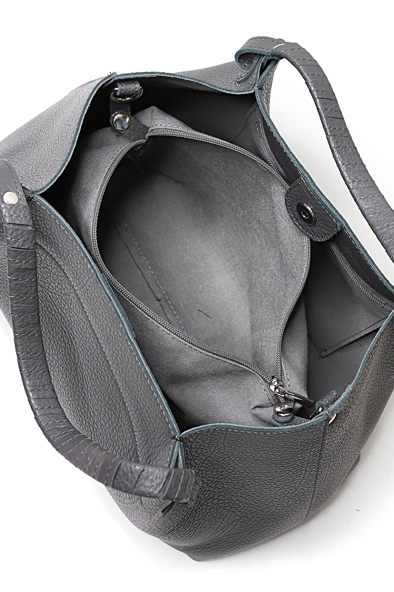 Женская сумка из натуральной кожи среднего размера. Вместительная и функциональная. Внутри сумки два кармана для мелочей. Отличительным элементом дизайна является стильная оплётка ручек.