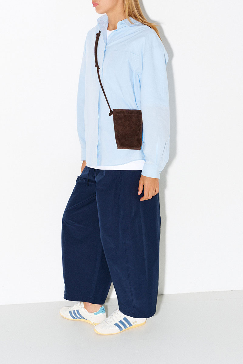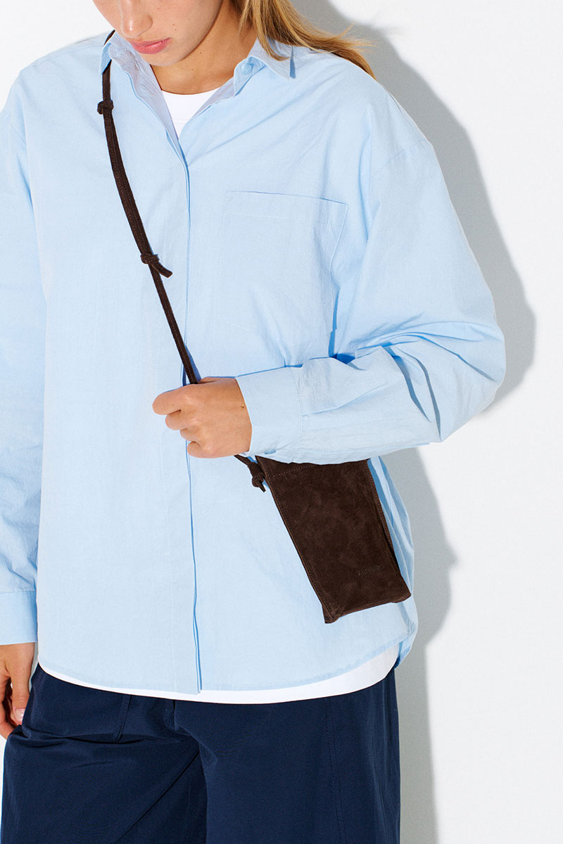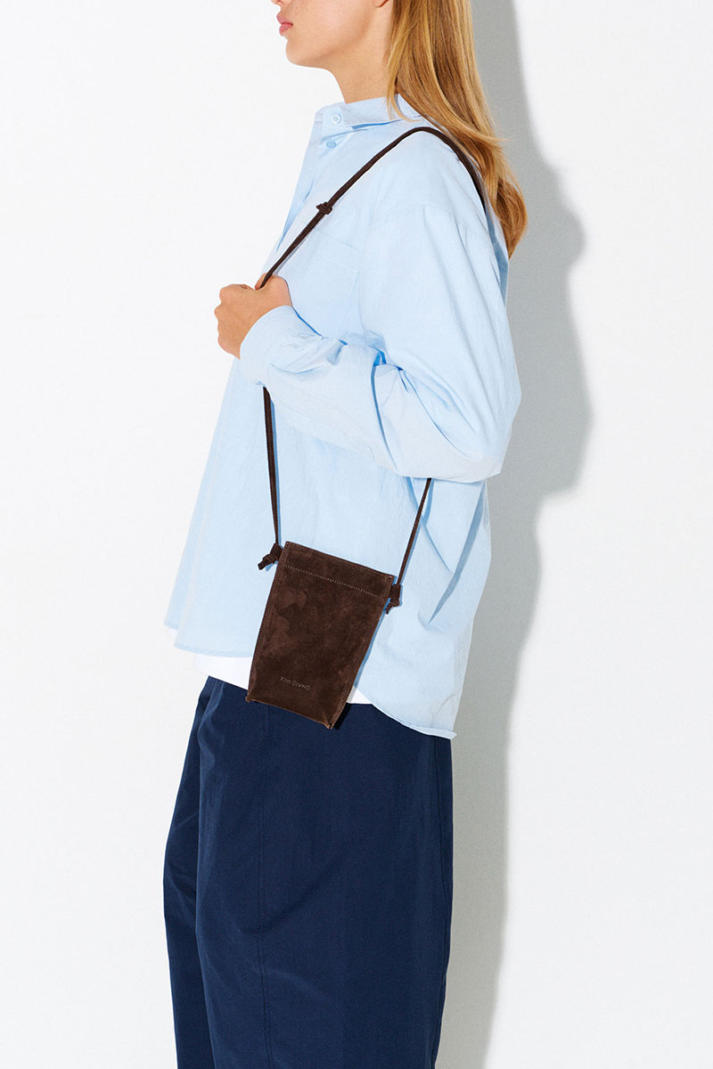 Сумка из мягкой натуральной кожи (велюр) в трендовом шоколадном цвете. Закрывается на магнитный замок сверху, внутри на подкладке.
