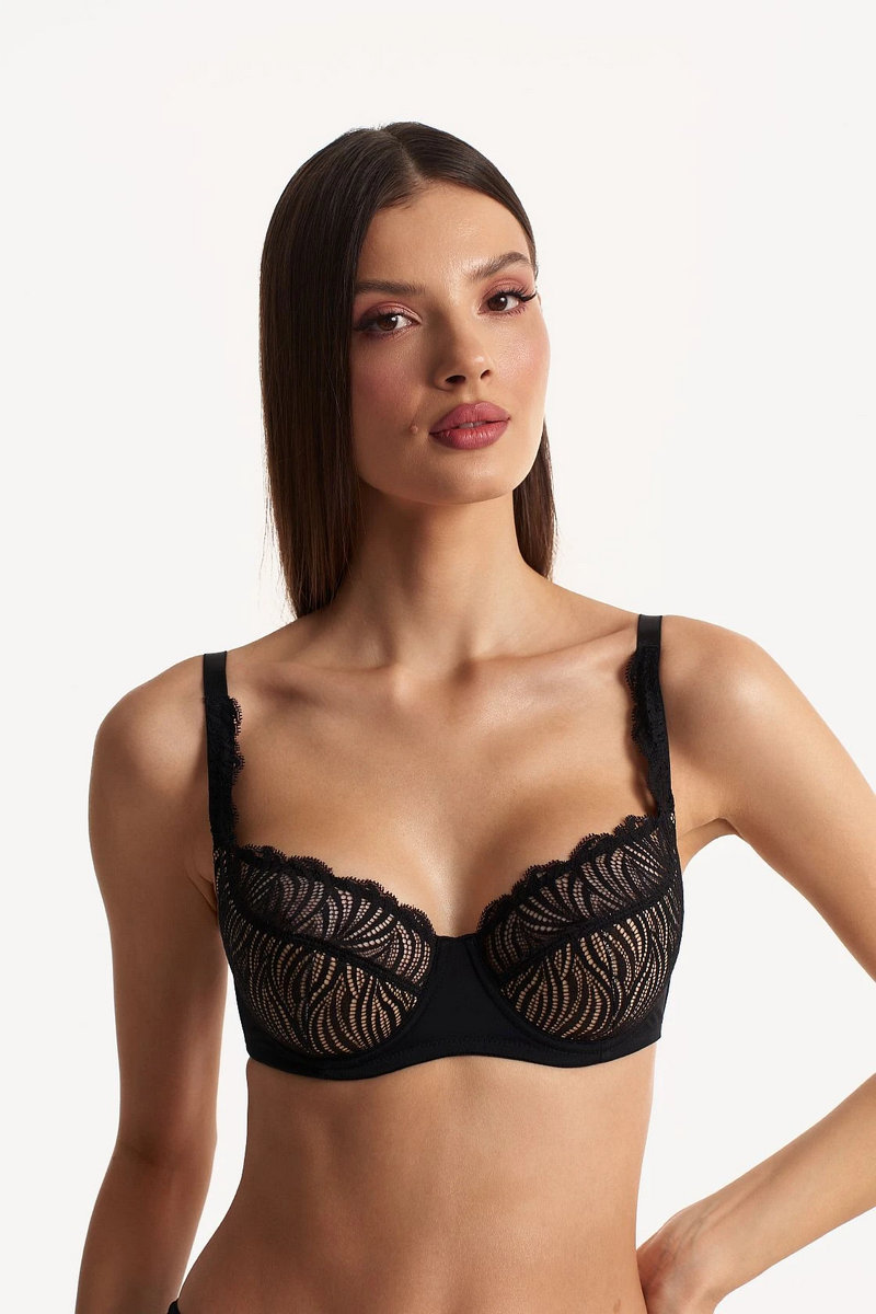 бюстгальтер на большую группу размеров на каркасах и стане. Нижние детали чашки уплотнены дублированным полотном. В боковом шве пластины-уплотнители, застёжка на крючки и петли, бретель из эластичной бретельной ленты с регулировкой, ширина бретели 15-20 мм.