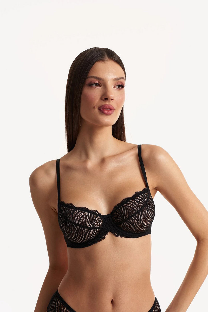 Бюстгальтер на каркасах из эластичного кружева и сетчатого полотна, чашка без уплотнителя.