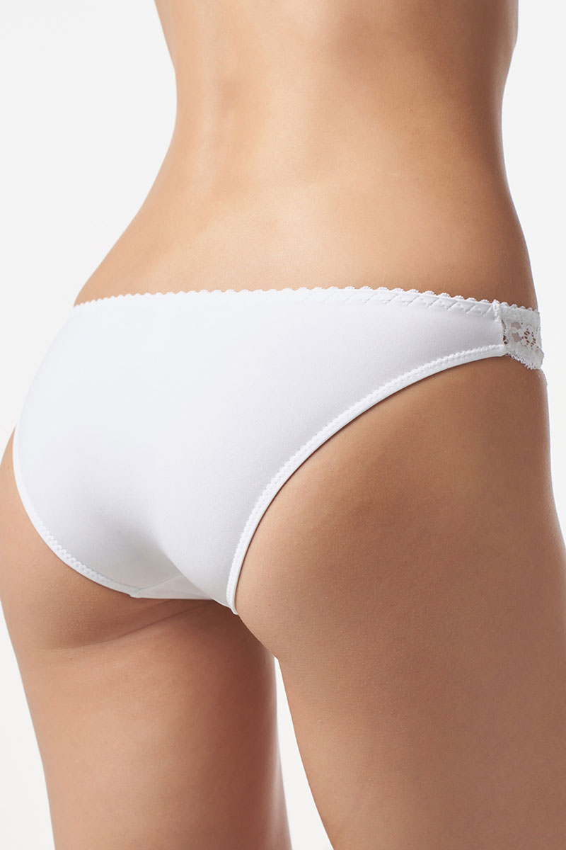 Трусы-слипы с низкой линией талии из эластичного трикотажного полотна (микрофибра). Передняя деталь выполнена из эластичного кружева. Подкладка ластовицы из 100% х/б.