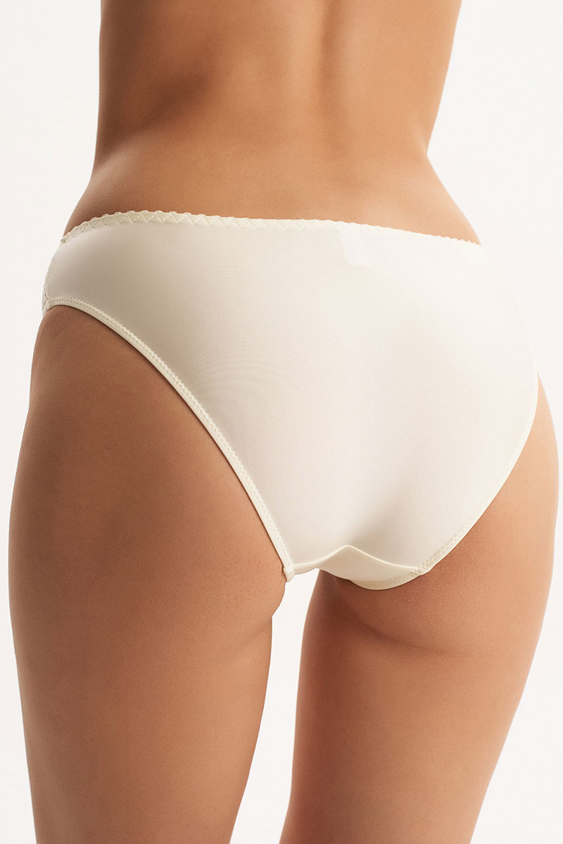 Трусы-слипы со средней линией талии. Выполнены из эластичного трикотажного полотна (микрофибра). По бокам вставки из кружева. Подкладка ластовицы из 100% х/б.