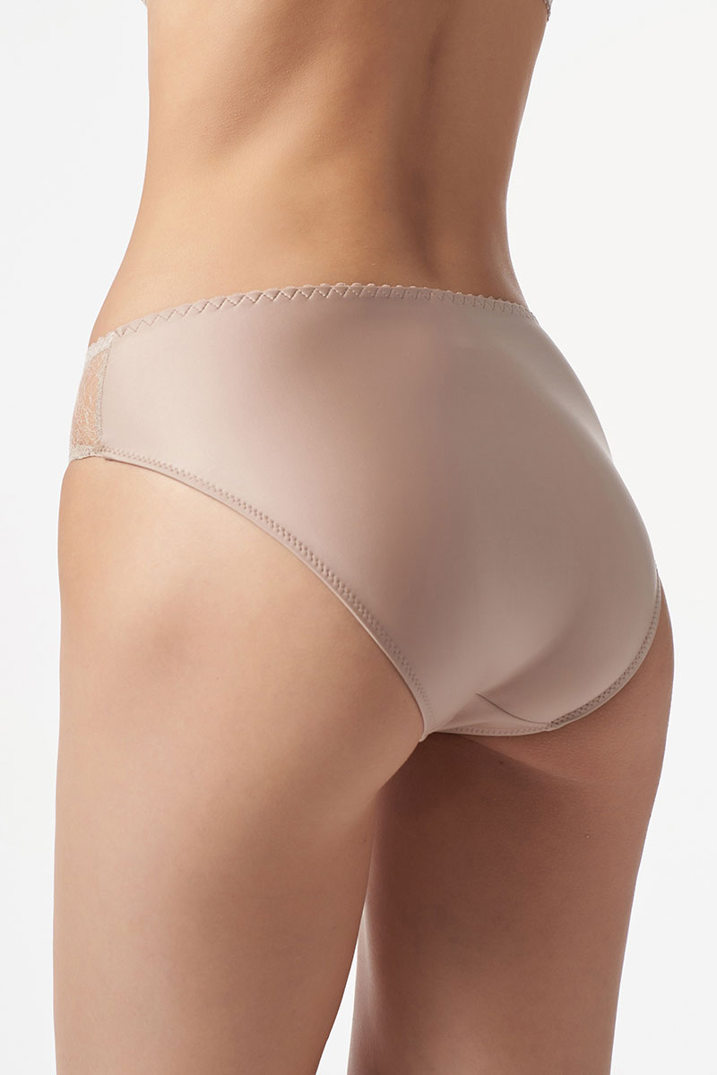 Трусы с высокой линией талии из эластичного трикотажного полотна (микрофибра). Передняя деталь имеет две отделочные детали из эластичного кружева. Подкладка ластовицы из 100% х/б.