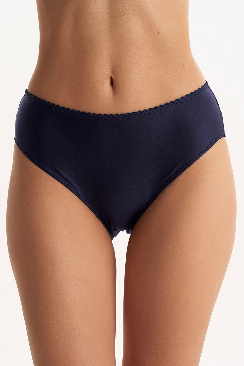 Трусы с высокой линией талии из эластичного трикотажного полотна (микрофибра). Задняя деталь полностью из эластичного кружева. Подкладка ластовицы из 100% х/б.