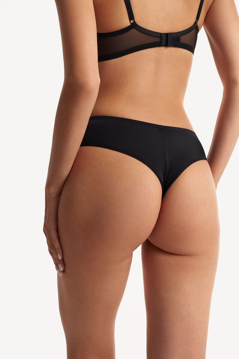 Трусы-бразилиана из полотна и неэластичной вышивки.