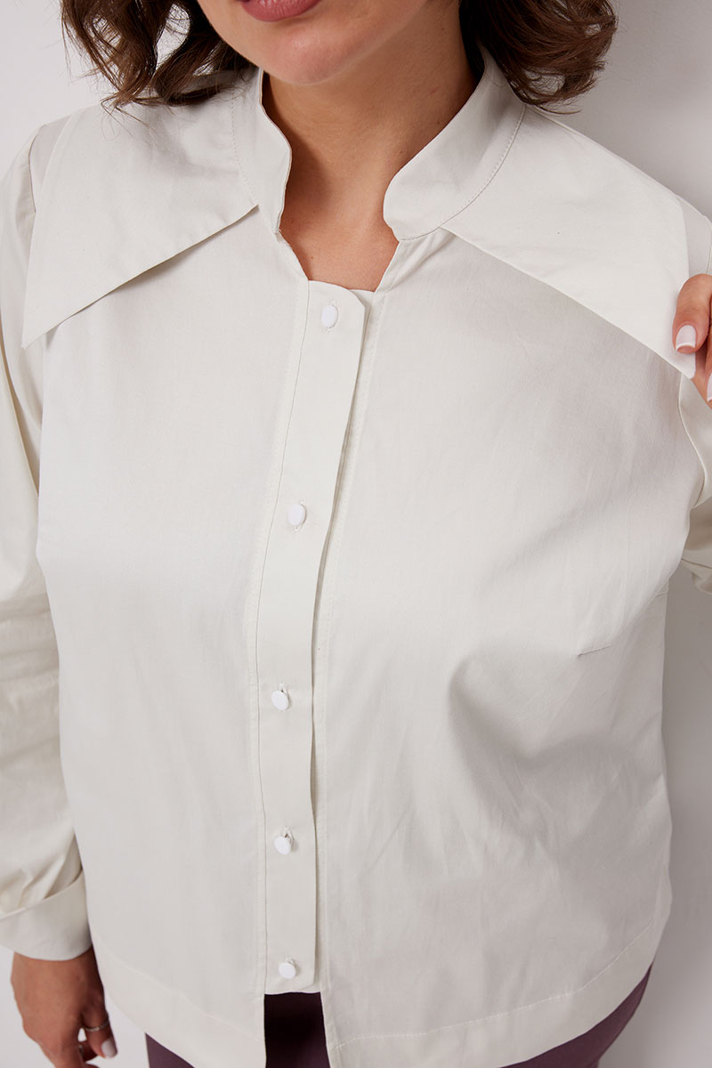 Блуза прямого кроя будет изюминкой вечернего наряда, и в то же время легко впишется в деловой гардероб, добавляя в образ нотку женственности и роскоши. Модель выполнена из приятного хлопка средней плотности, который идеально держит форму, при этом остаётся приятным к телу и комфортным в течение всего дня.