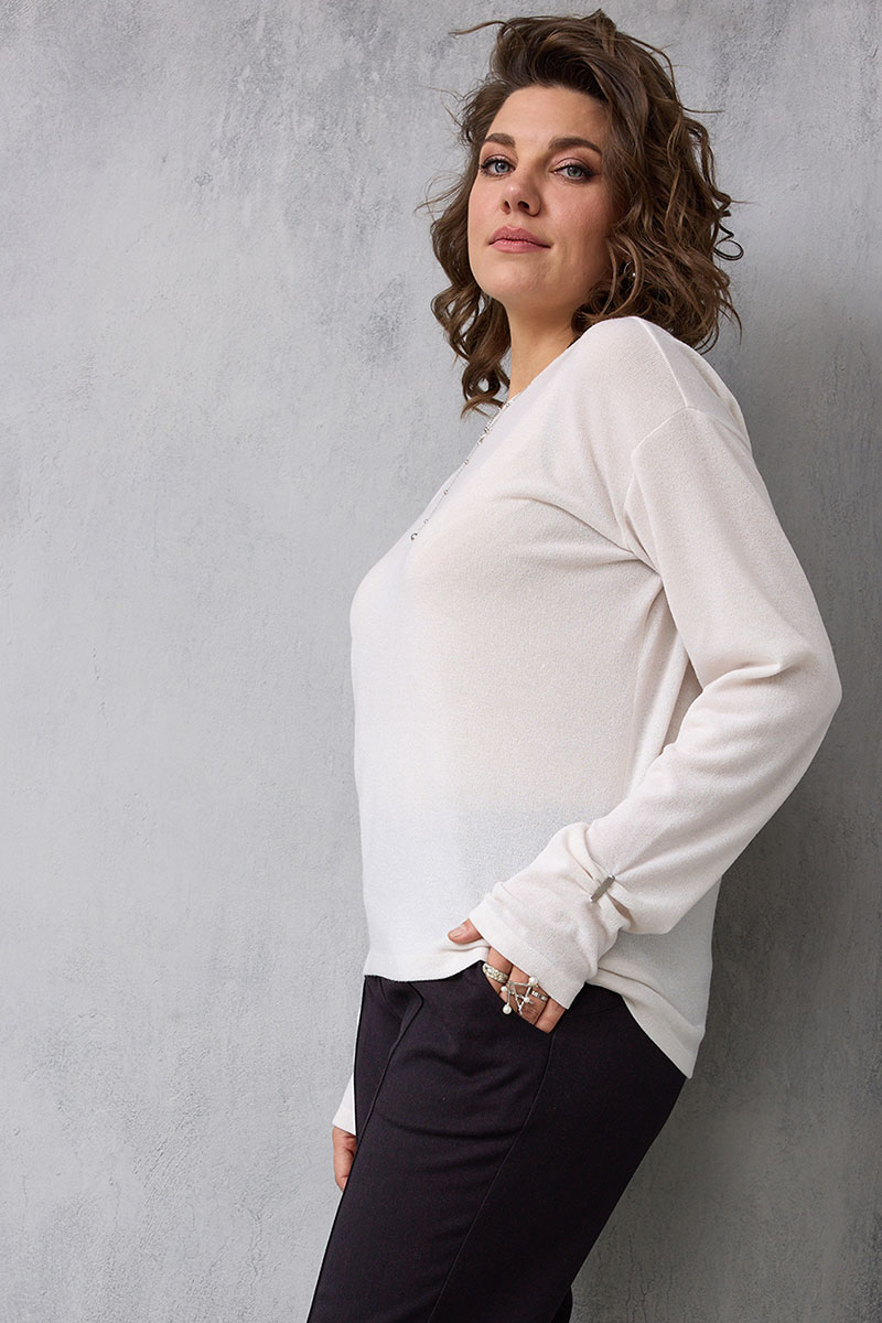 Вы непременно полюбите этот мягкий, нежный, уютный лонгслив из приятного к телу трикотажа. Освежающий, актуальный вне времени молочный цвет незаменим в современном гардеробе стильной модницы, поскольку помогает создать множество гармоничных сочетаний. Это базовая модель, которую можно носить самостоятельно, а также использовать в сочетании с жакетом, жилетом.