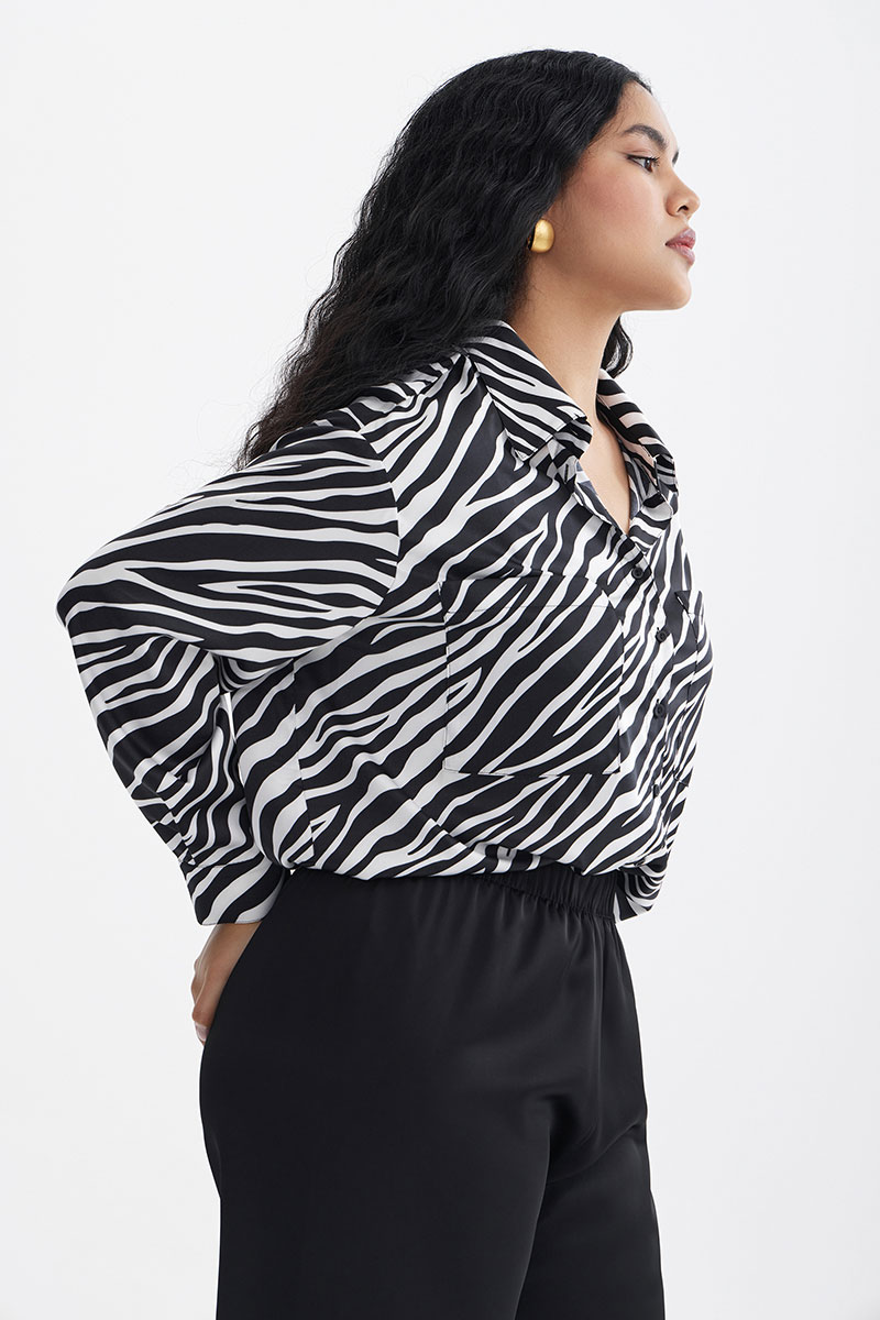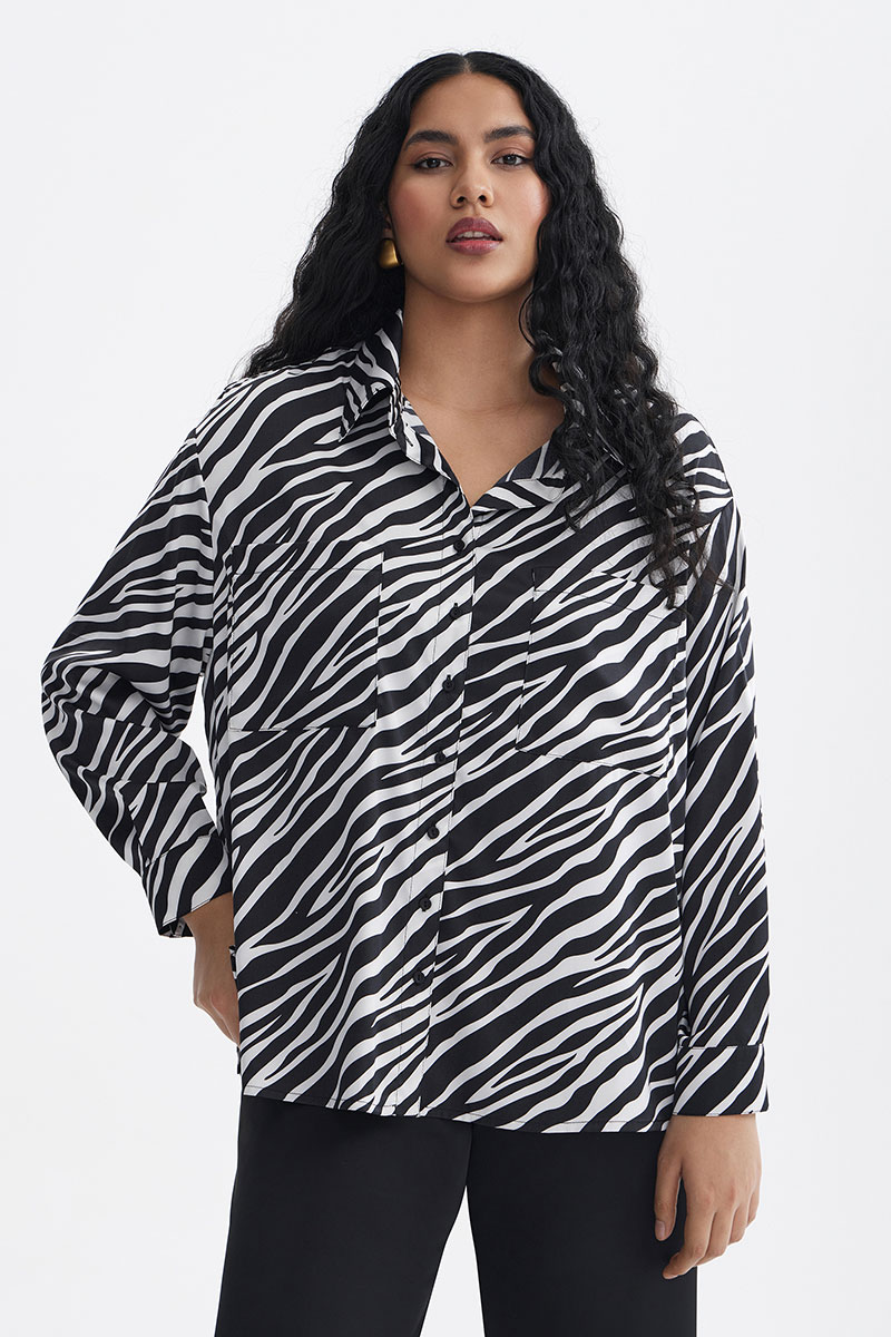 Цветовая гамма для верха, подкладки, фурнитуры, отделки: блузка выполнена из ткани с рисунком