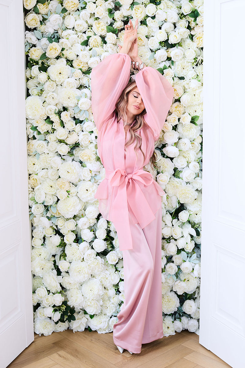 Цветовая гамма для верха, подкладки, фурнитуры, отделки: блузка из ткани в одной цветовой гамме. Отделочные строчки в тон ткани.