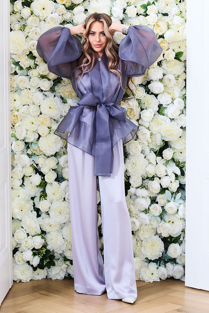 Цветовая гамма для верха, подкладки, фурнитуры, отделки: блузка из ткани в одной цветовой гамме. Отделочные строчки в тон ткани.