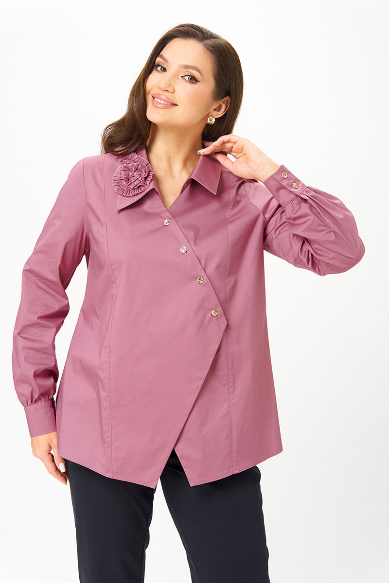 Блузка выполнена в насыщенном цвете марсала, подчеркивающем элегантность и изысканность вашего образа. Модель в фирменном стиле Michel Chic сочетает комфорт хлопковой ткани и изысканность деталей.