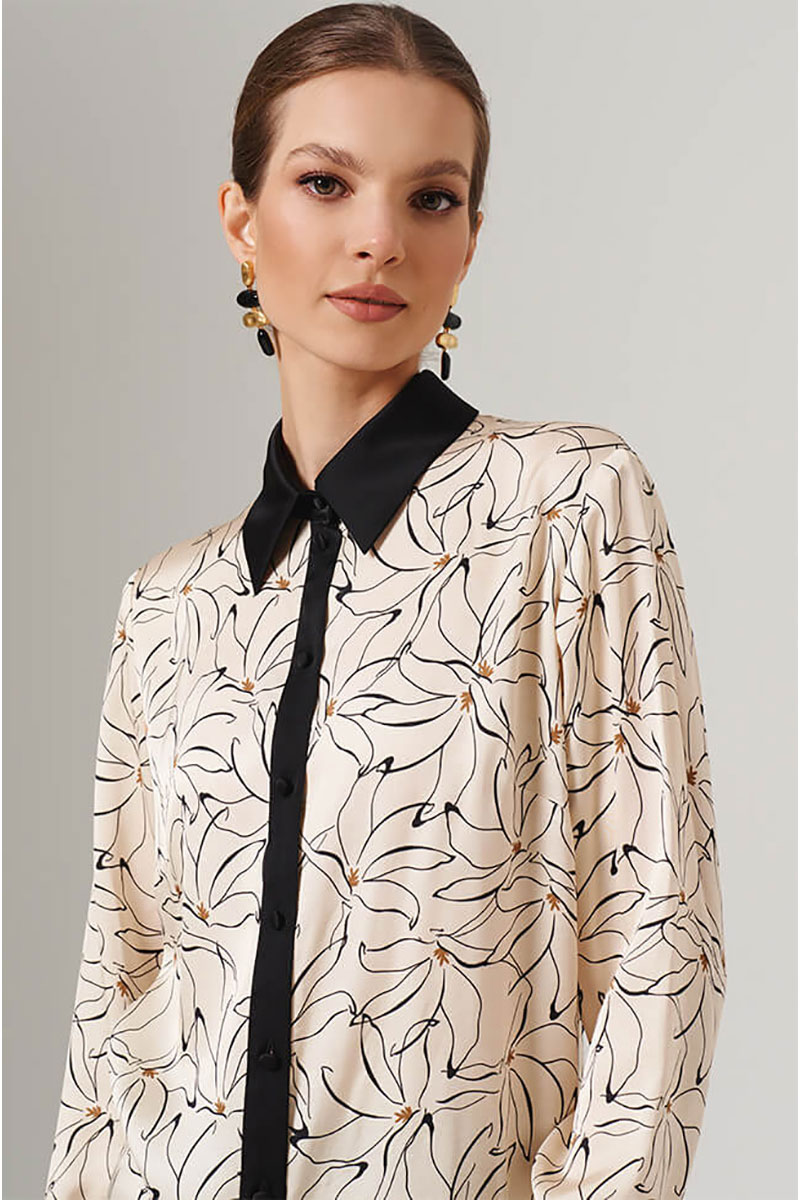 Блузка прямого силуэта от бренда NELVA станет ярким и стильным акцентом в вашем гардеробе. Блузка выполнена из принтованного полотна «Осенние лилии». Интересный принт напоминает об осени и добавляет образу художественной глубины. Эта блузка - идеальный выбор для тех, кто ценит индивидуальность: она прекрасно дополнит монохромные комплекты с классическими брюками или юбкой-карандаш, а также станет выразительным центром образа в паре с джинсами. Качественные материалы и продуманный крой делают эту модель универсальной вещью, которая подарит вам ощущение уютной уверенности и стиля в любой ситуации. С любовью и заботой о Вас, команда бренда NELVA!