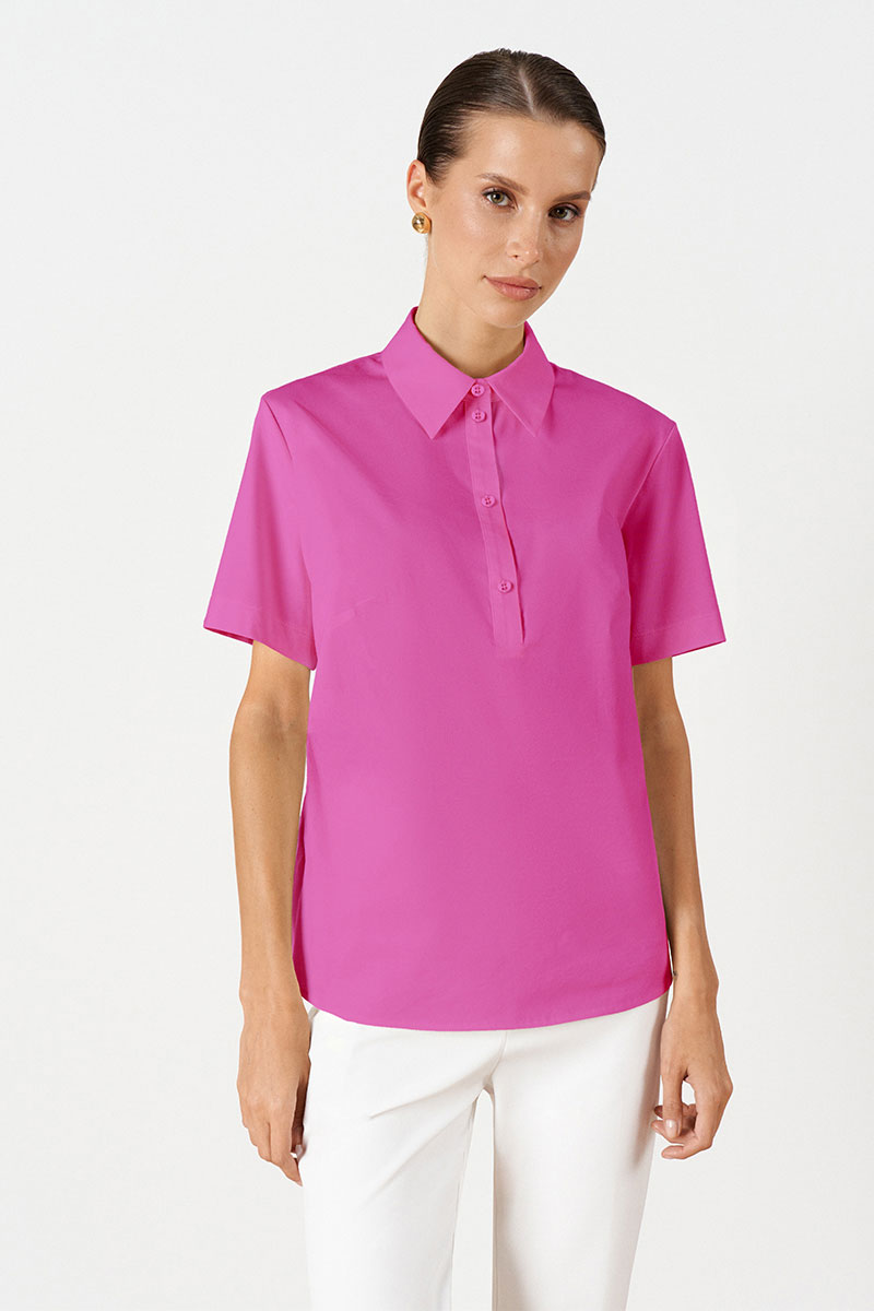 Женская блузка свободного силуэта в цвете фуксия от бренда FRIDAY by NELVA, которая станет идеальным дополнением вашего гардероба. Эта блузка выполнена из приятного смесового полотна с добавлением хлопка, что обеспечивает комфорт и воздухопроницаемость на протяжении всего дня. Благодаря коротким рукавам, она прекрасно подходит для тёплой погоды и создаёт легкий, непринужденный образ. Розовый цвет придаёт изделию свежесть и уникальность, что позволяет легко комбинировать её с различными предметами одежды, будь то джинсы, юбки или брюки. Свободный силуэт добавляет женственности и изящества, делая блузку подходящей как для повседневных выходов, так и для офисных образов. Не упустите возможность подчеркнуть свою индивидуальность с помощью этой стильной и комфортной блузки, которая станет незаменимым элементом вашего гардероба. С любовью и заботой о Вас, команда брендов NELVA FRIDAY и by NELVA!