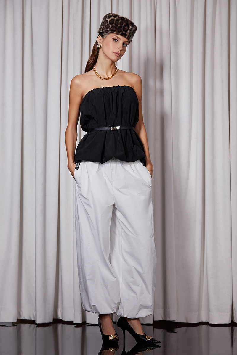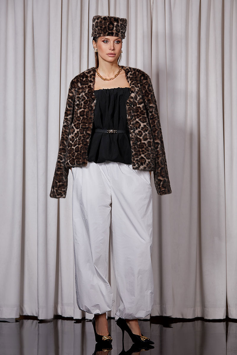 Блуза – “баллон” выполнена из шуршащего хлопка. Изделие полностью на хлопковой подкладке. Ремень входит в комплект.