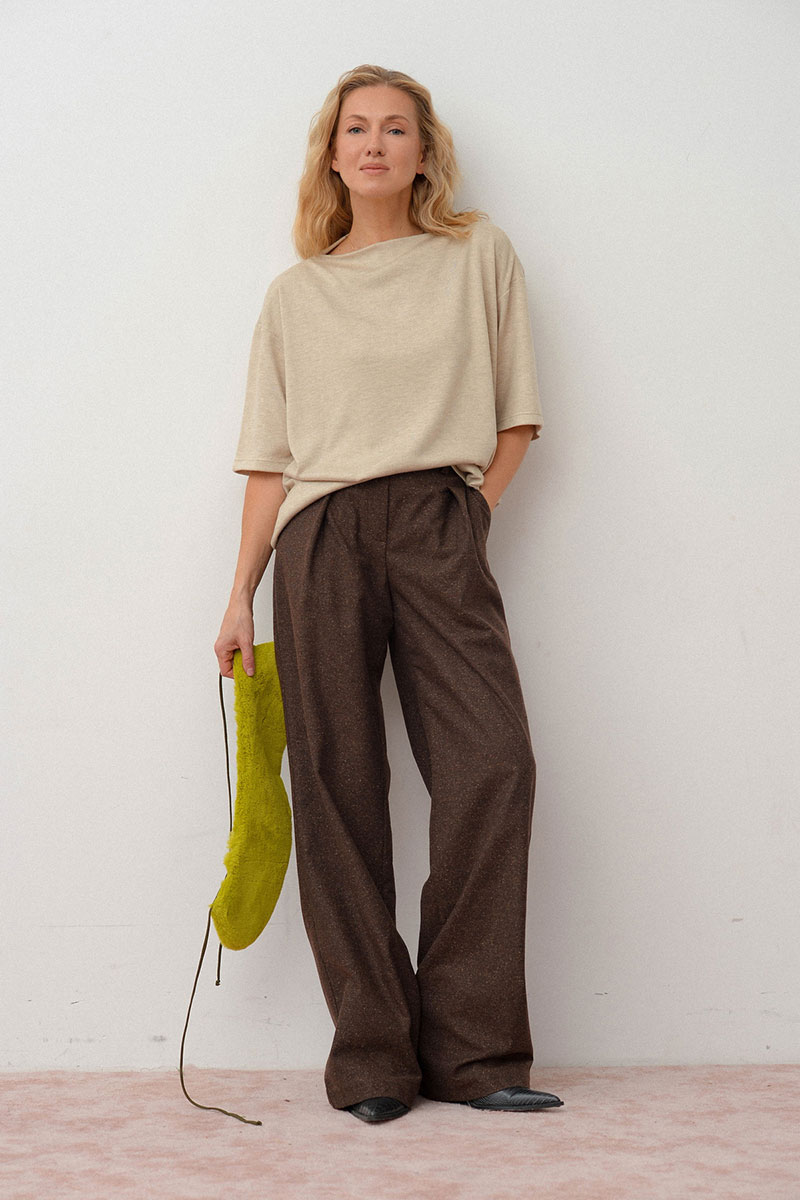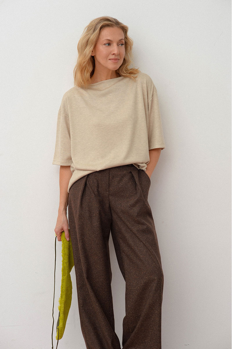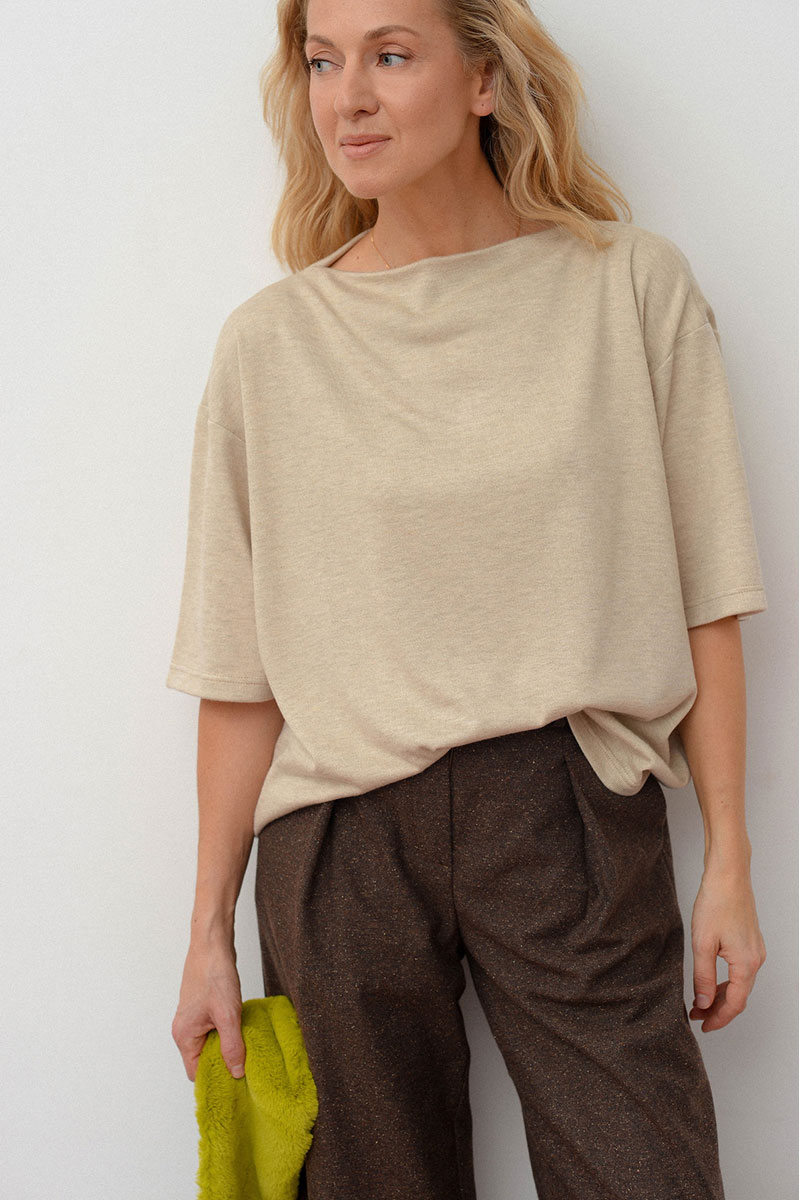 Блуза из нежного трикотажа делает образ расслабленным, непринужденным и максимально комфортным. Выполнена из мягкой смесовой шерсти и вискозы, нежного и гладкого материала - почти не ощущается на теле. Особенность изделия - цельнокроенная горловина.