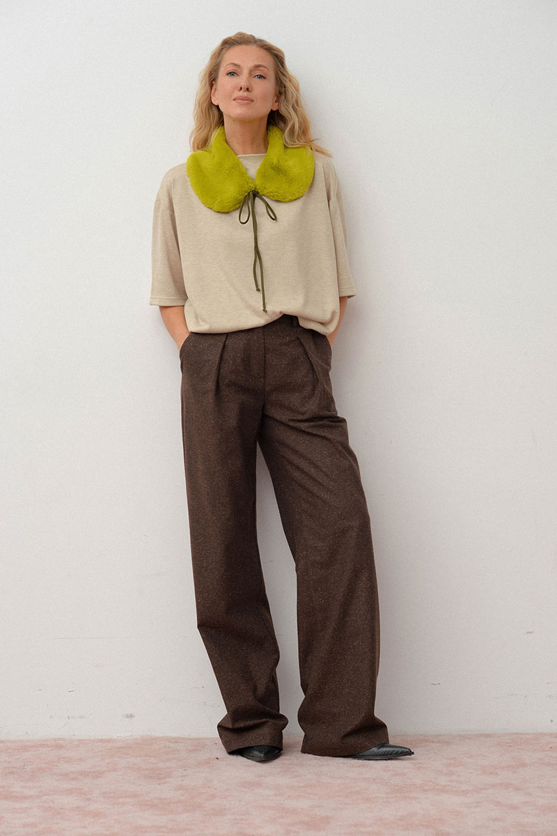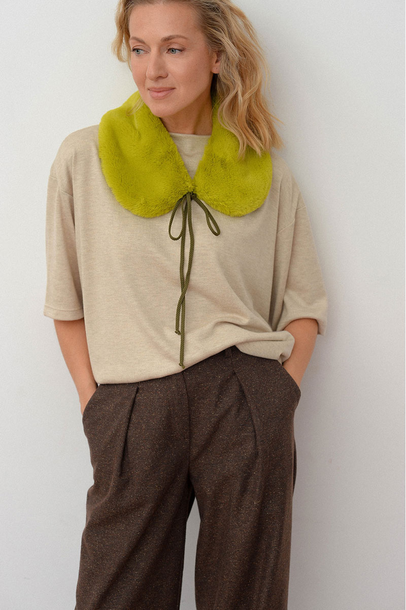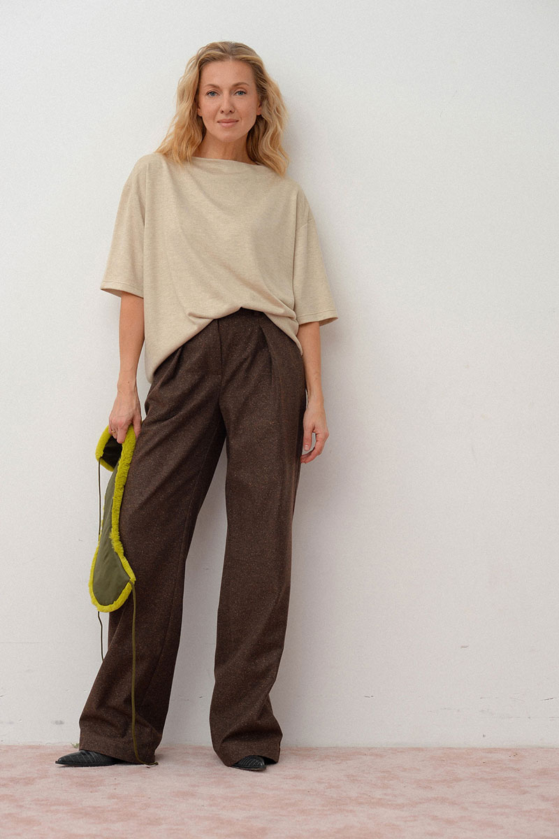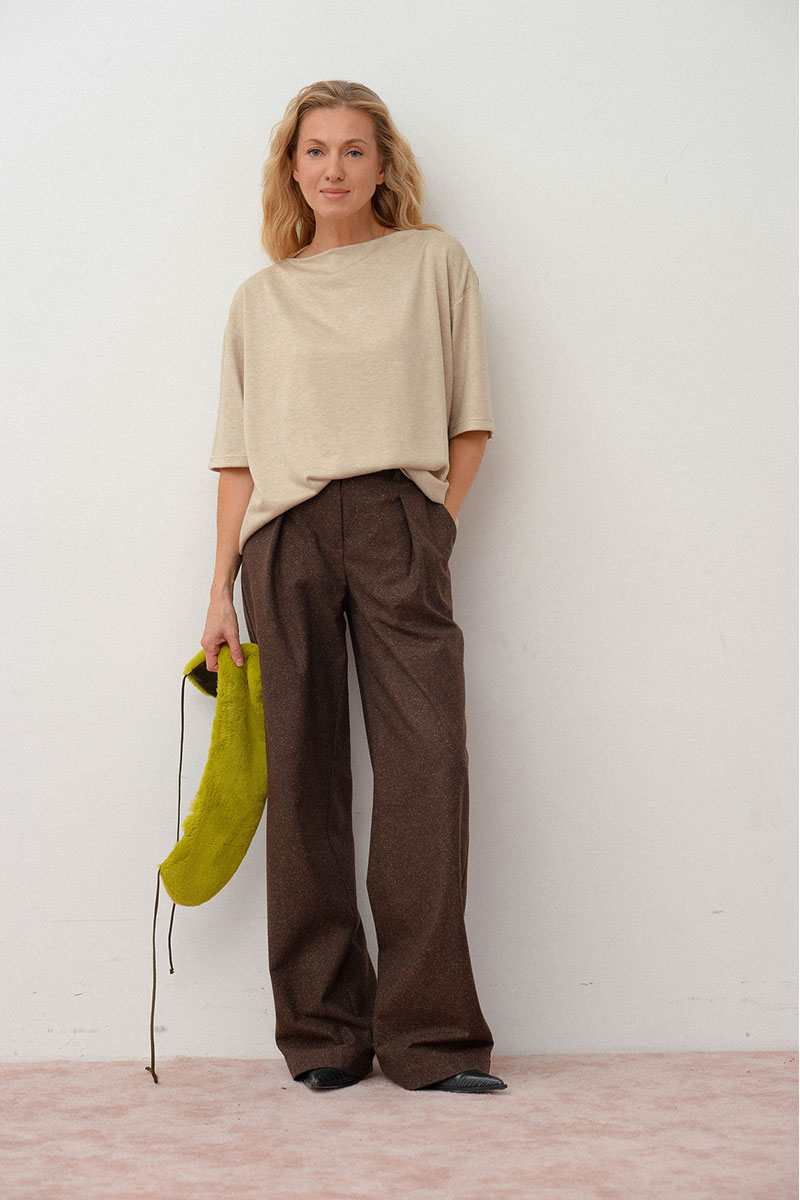 Блуза из нежного трикотажа делает образ расслабленным, непринужденным и максимально комфортным. Выполнена из мягкой смесовой шерсти и вискозы, нежного и гладкого материала - почти не ощущается на теле. Особенность изделия - цельнокроенная горловина.