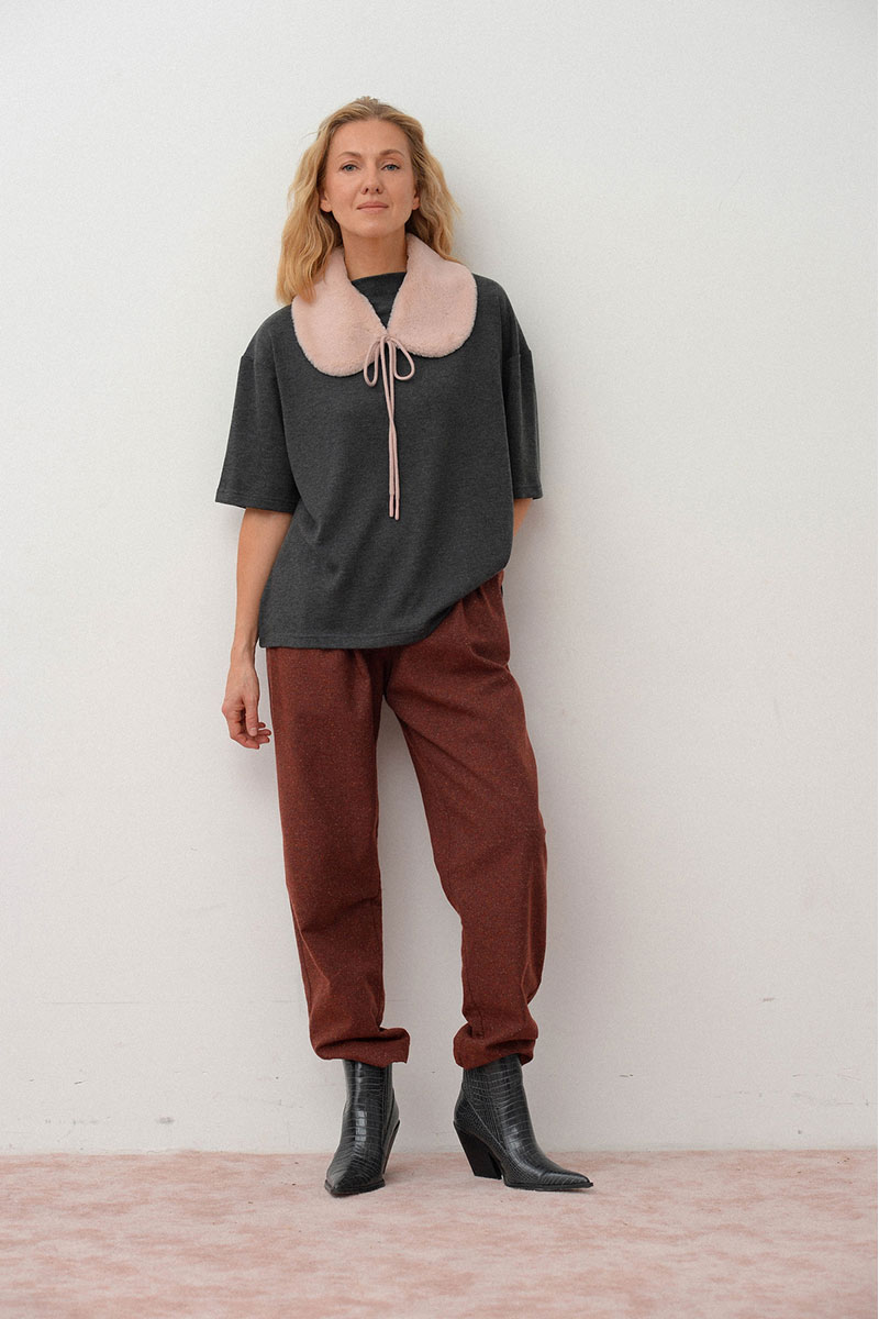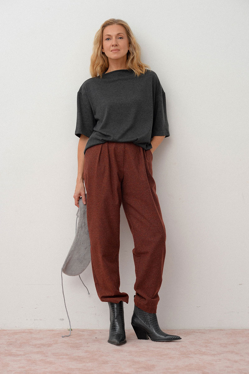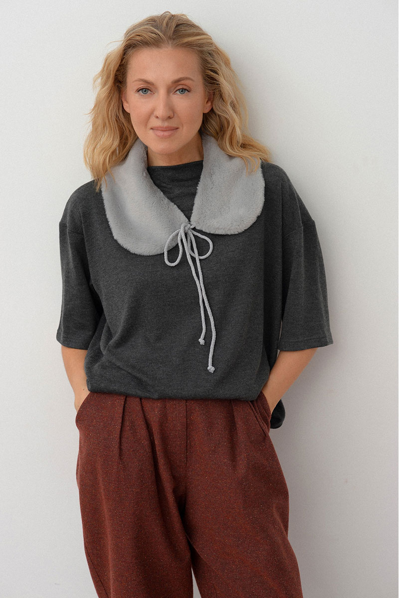 Блуза из нежного трикотажа делает образ расслабленным, непринужденным и максимально комфортным. Выполнена из мягкой смесовой шерсти и вискозы, нежного и гладкого материала - почти не ощущается на теле. Особенность изделия - цельнокроенная горловина.