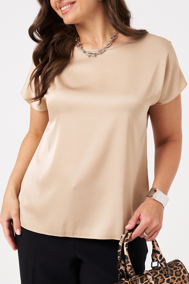 Эта женская базовая блуза прямого силуэта - универсальный и стильный выбор для вашего гардероба. Она отлично сочетается с юбками, брюками и джинсами, создавая разнообразные образы для повседневной носки. Легкая и комфортная, блуза выполнена из приятной на ощупь ткани с гладкой поверхностью, которая не парит даже в жаркую погоду. Свободный крой с опущенной линией плеча и короткими цельнокроеными рукавами обеспечивает безупречную посадку и комфорт. Обработанная узкой планкой горловина придает изделию аккуратный вид. Ее легко стирать в машинке, она быстро сохнет и сохраняет форму после стирки. Купите эту блузу и создавайте множество стильных образов для любого дня!