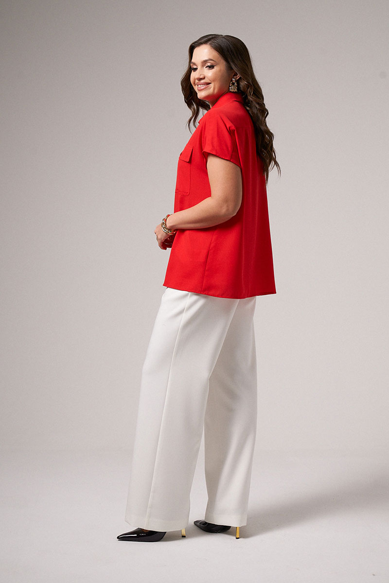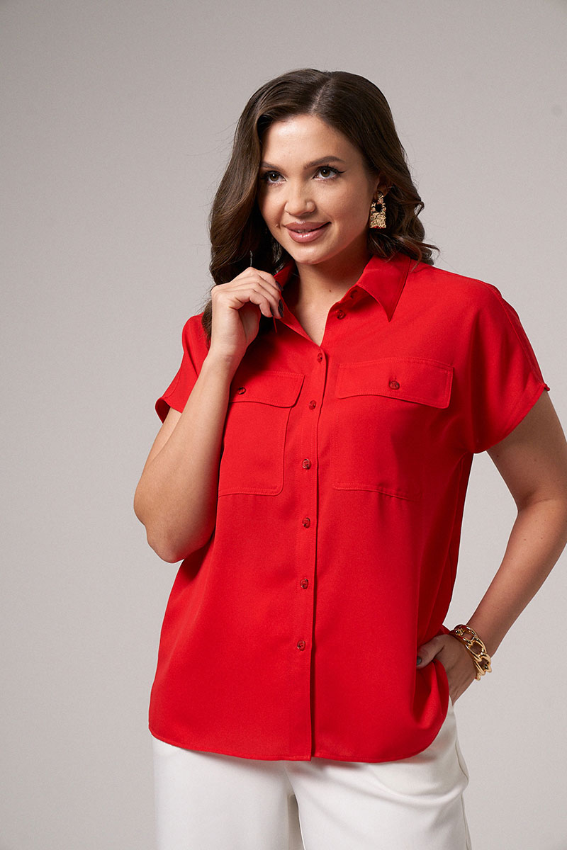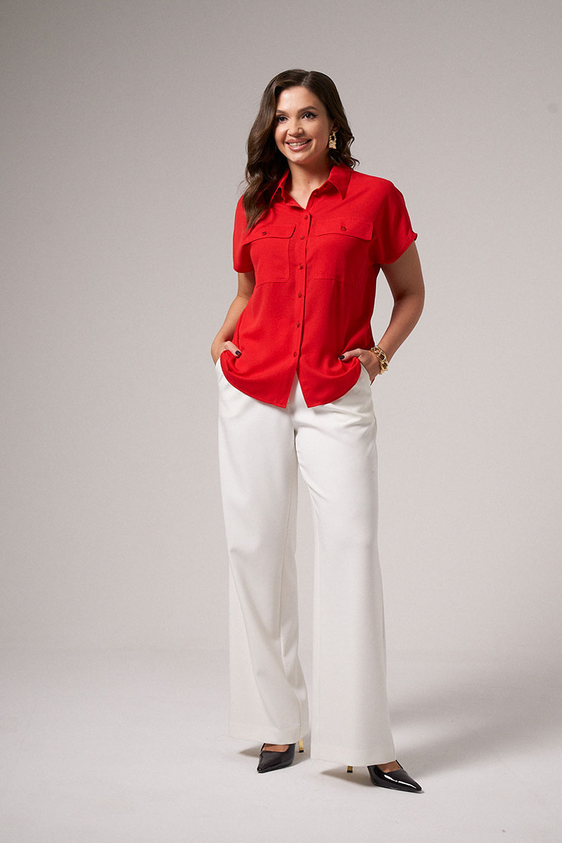Блуза женская из лёгкой струящейся ткани для повседневной носки. Блуза прямого силуэта. Линия плеча спущенна, переходящая в рукав. Центральная застежка на петли-пуговицы. Горловина оформлена воротником- стойкой. Длина до середины бёдер, низ ровный.Эта модель идеально сочетается со светлыми брюками, что делает ее неотъемлемой частью вашего гардероба. Блузка также подойдет и для офиса, а также как нарядный элемент для вечерних мероприятий.