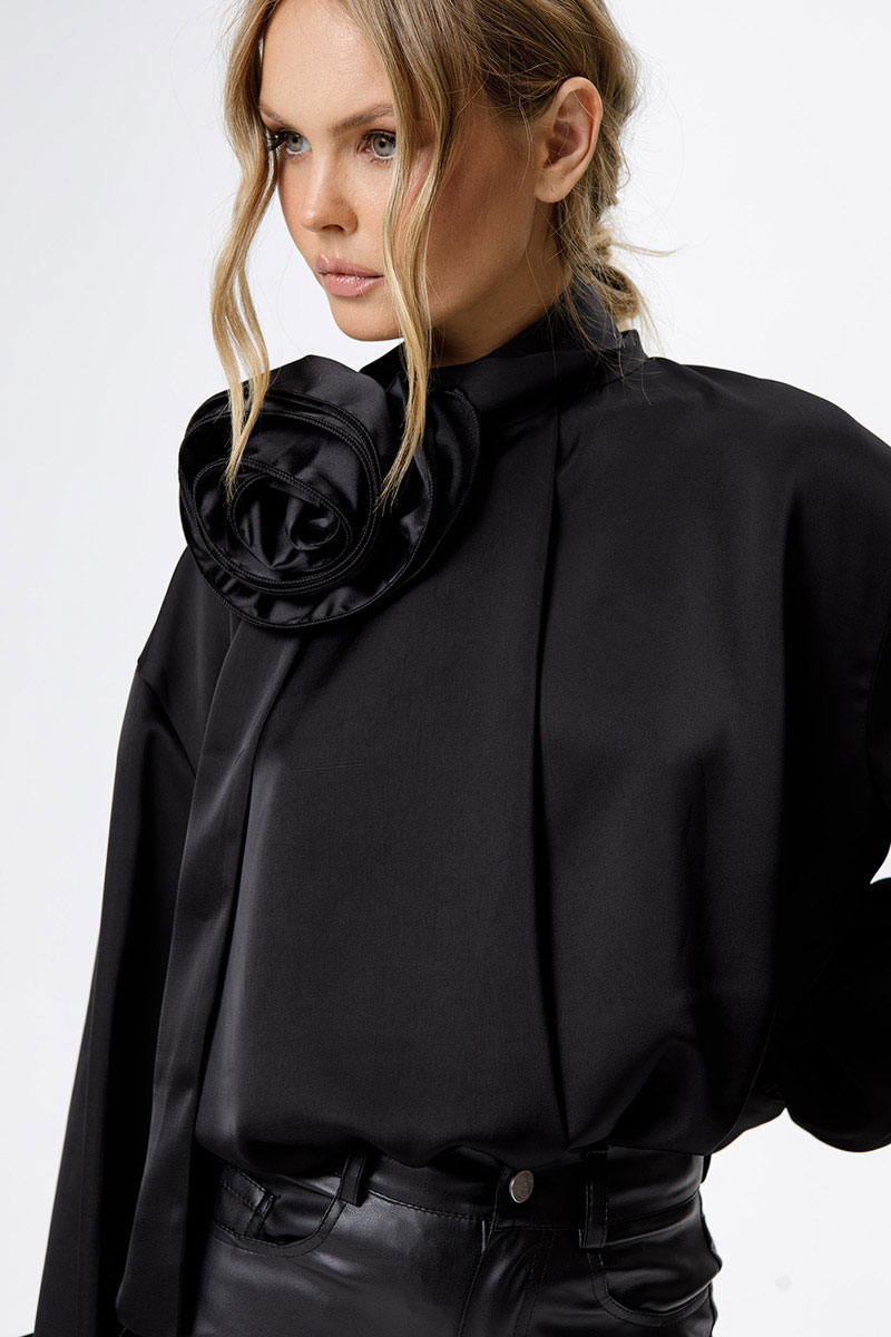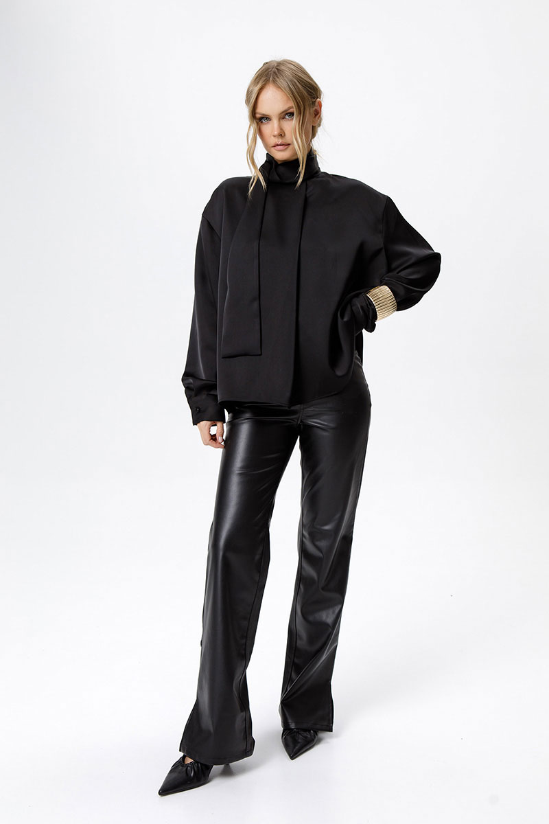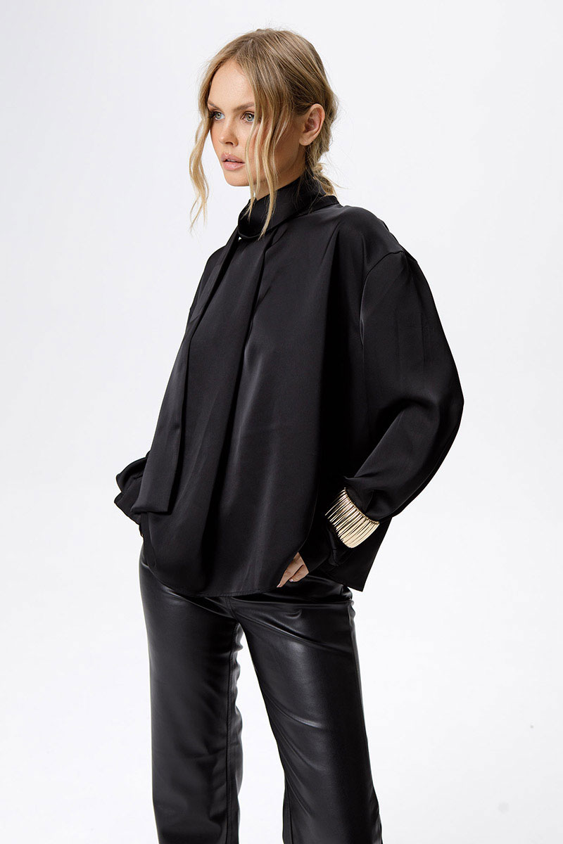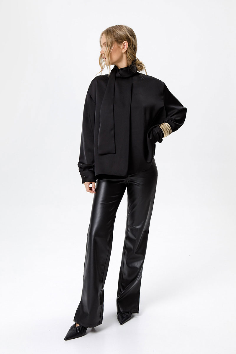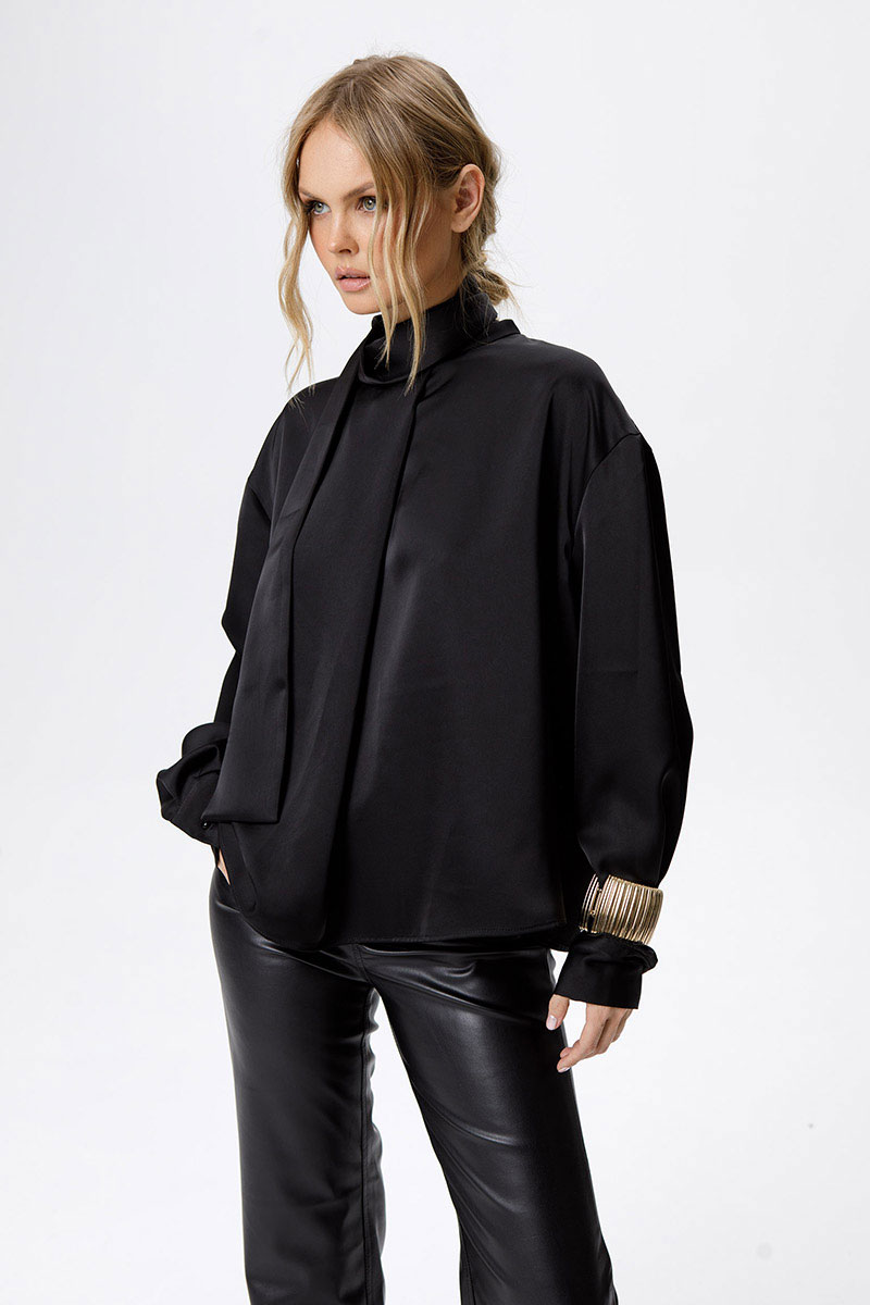 Струящаяся свободная блуза со стойкой-бантом.
