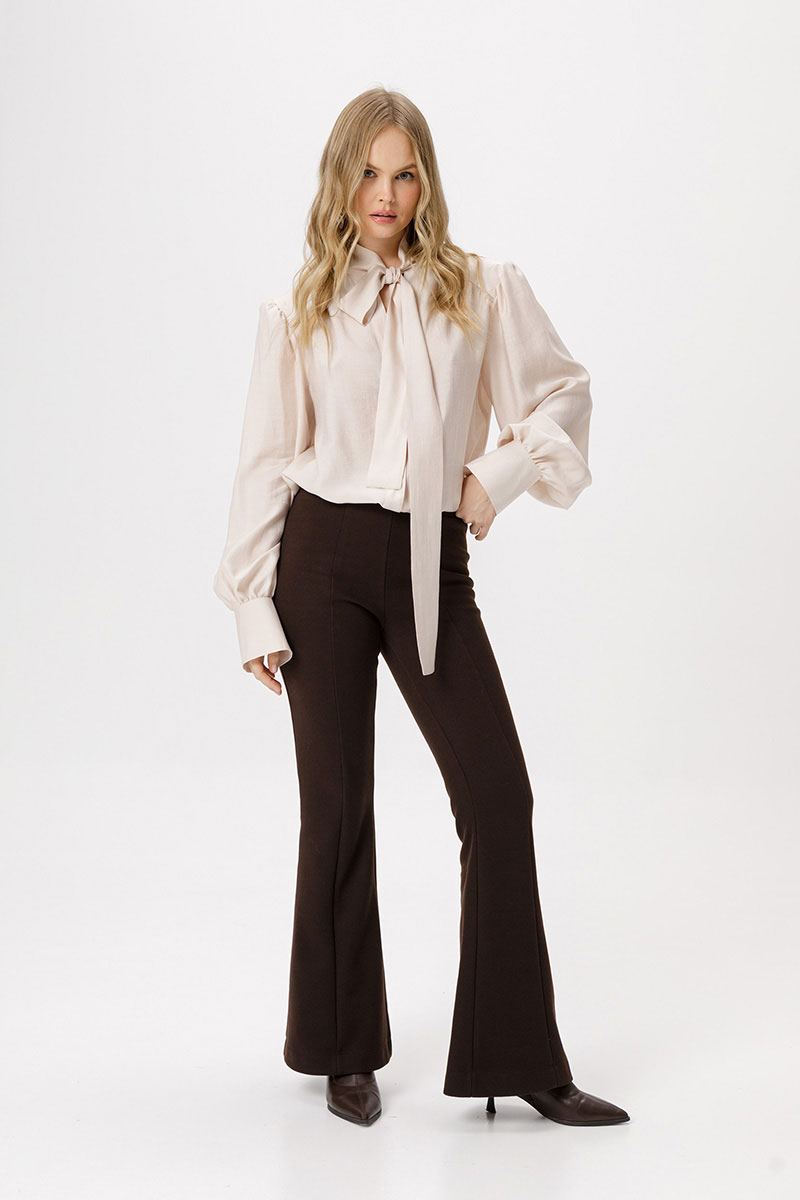 Блуза из полупрозрачной вискозы свободного силуэта с воротником-бантом.