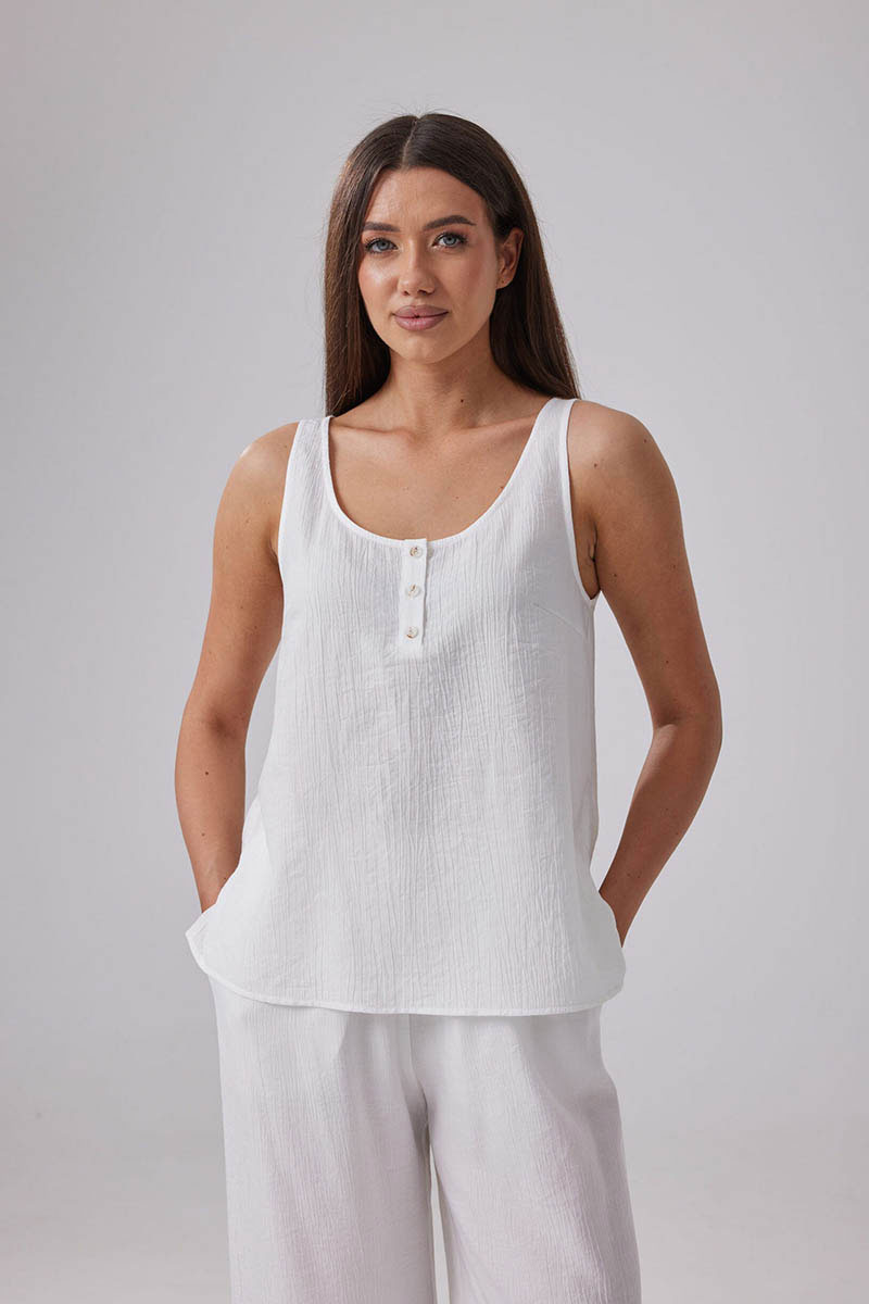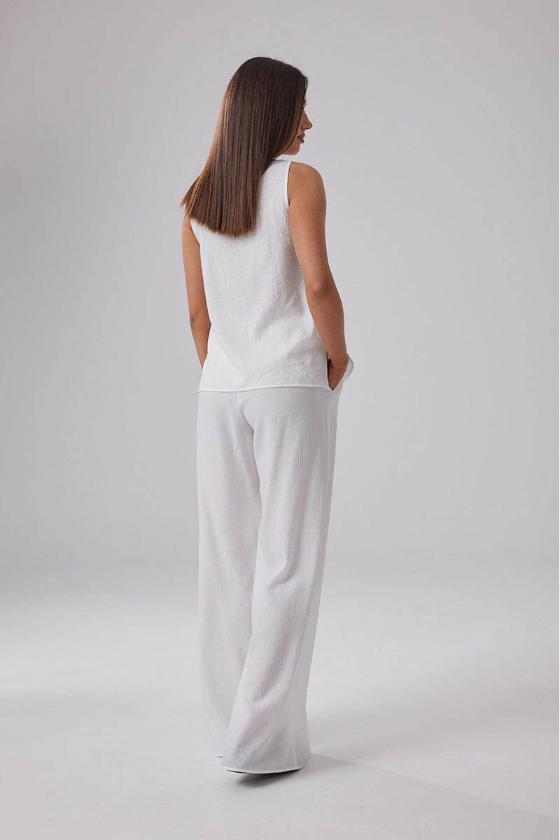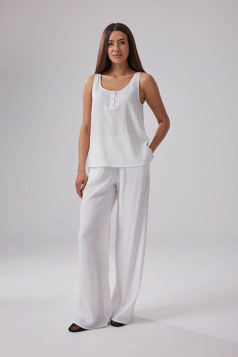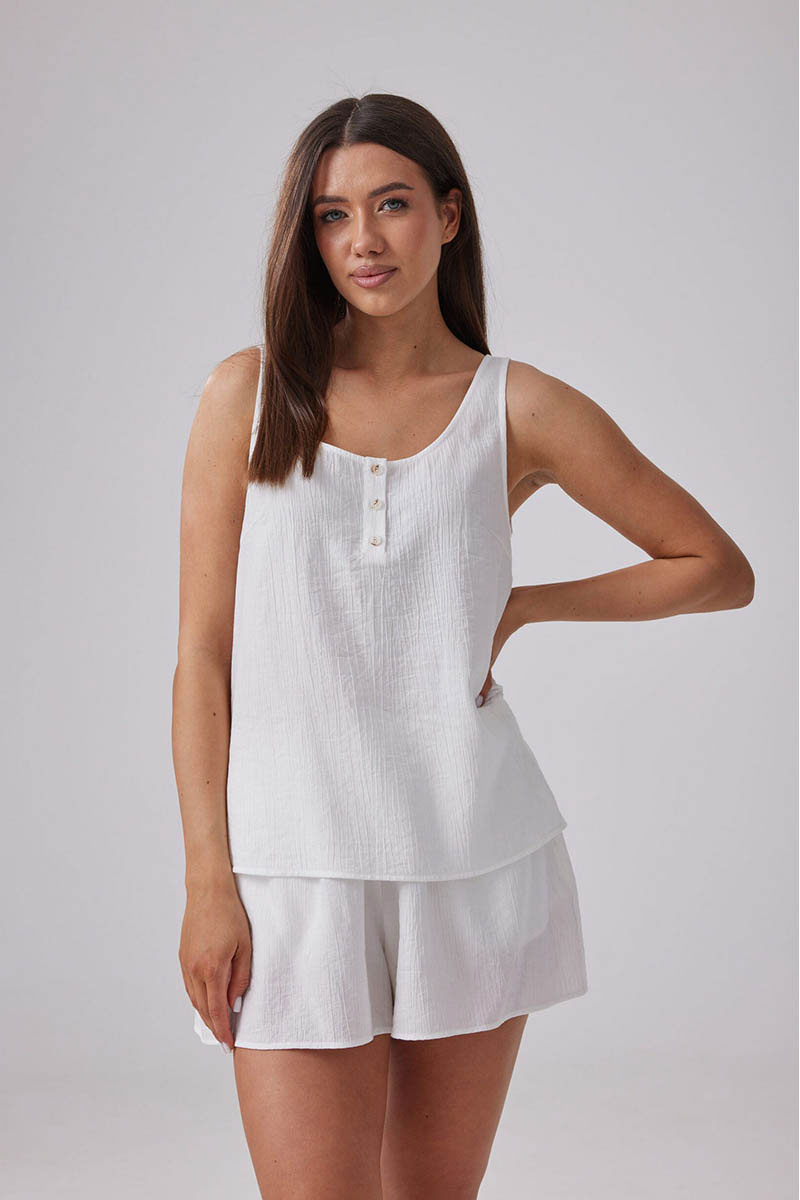 Летняя женская блузка выполнена из струящегося вискозного полотна с эффектом мятости, идеально подойдет для жаркой погоды.