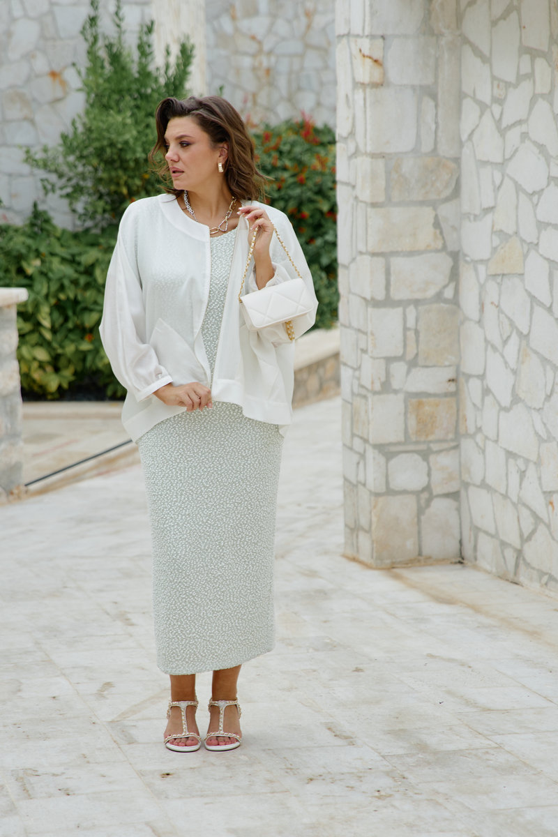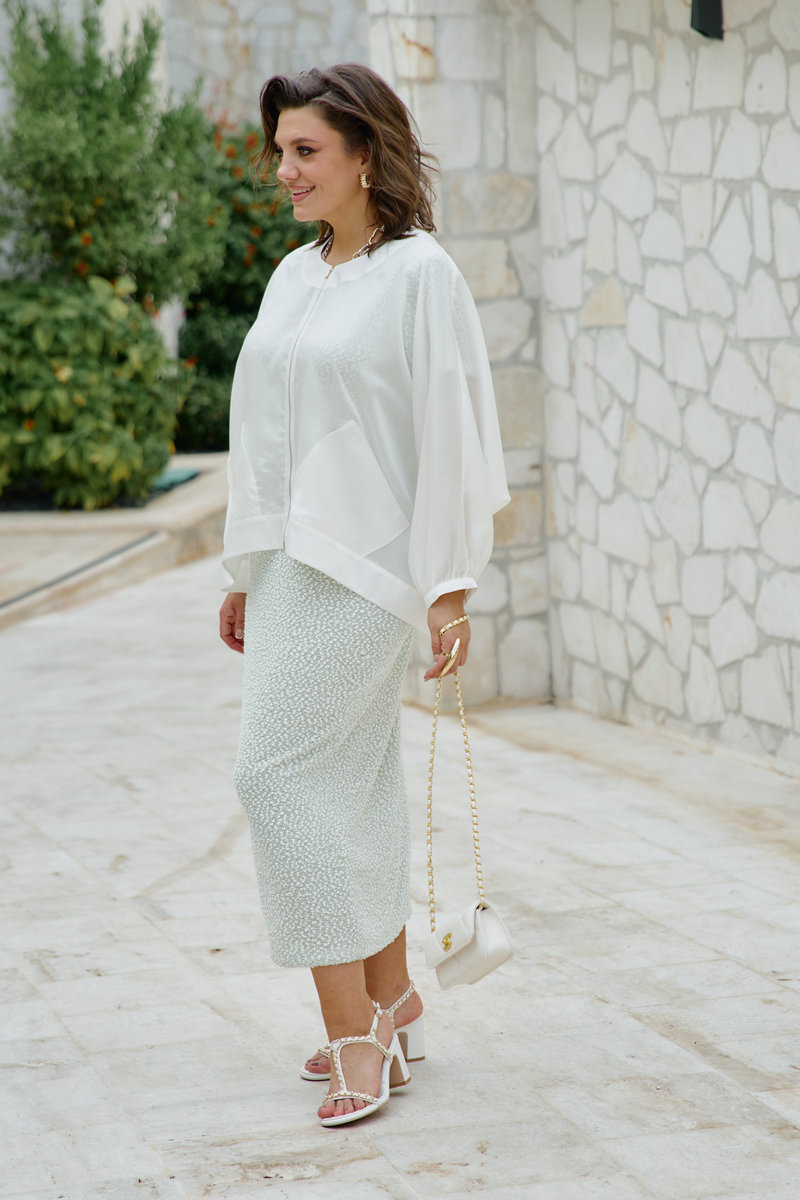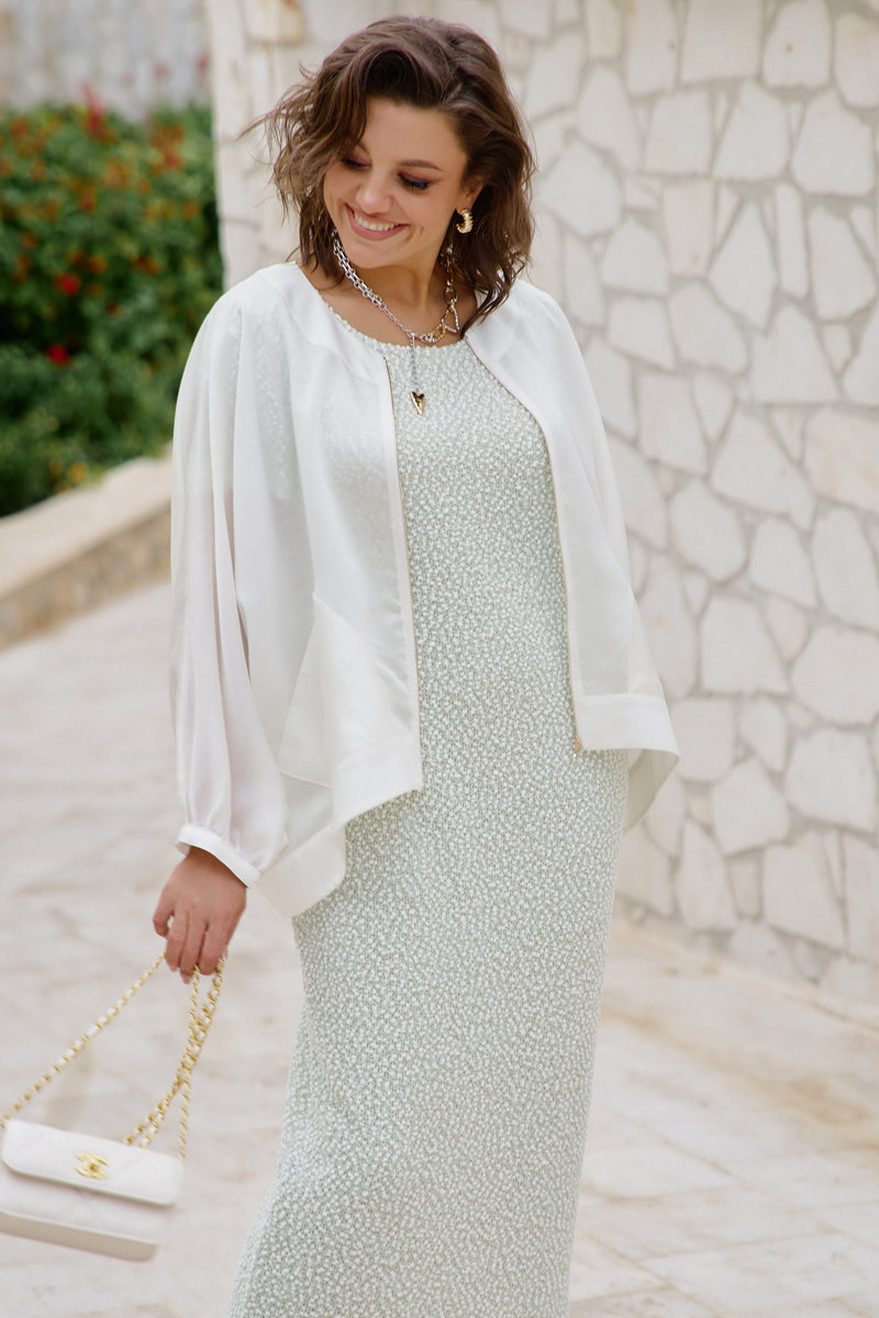 Блузон легкий полупрозрачный в романтическом стиле. В верхней части большого объема, плечевой пояс с естественным наклоном и плавным переходом в линию рукава. Блузон выполнен из полупрозрачной вуали в один слой. Рукава цельнокроенные, немного укороченные с сборкой по низу и притачной узкой манжетой. Застежка вертикальная по переду на металлическую тесьму-молнию. По переду выполнены накладные карманы из вуали. По спинке блузон немного удлинён. Блузон в тренде сезона и будет актуален в следующих. Это стильная женская одежда, которая идеально сядет на любую фигуру. Его легко сочетать с платьем, брюками, комбинезоном. Он станет любым предметом вашего гардероба в теплое время года, образ в нем женственный и элегантный. Фасон современный, из качественных материалов. Блузон уместно надеть на торжество, прогулку с подругами, ресторан, кафе. Вы будете чувствовать себя в нем роскошно и на каблуках, и в спортивном стиле с кроссовками. Это универсальная нарядная одежда для женщины, которая себя любит.