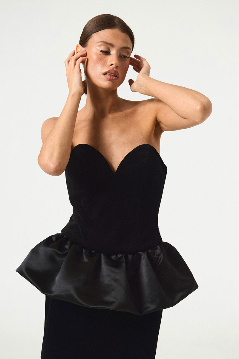 Топ, выполнен в корсетном стиле из хлопковой ткани с перламутровым напылением. По спинке застежка на разъемную металлическую молнию.