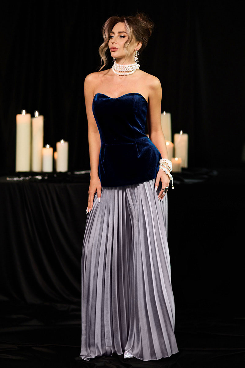 Корсет вечерний, со съемными бретелями, отрезной по линии талии Лиф переда и спинки с рельефными швами, усиленными регилином. Нижняя часть корсета с двумя встречными складками по переду и спинке.