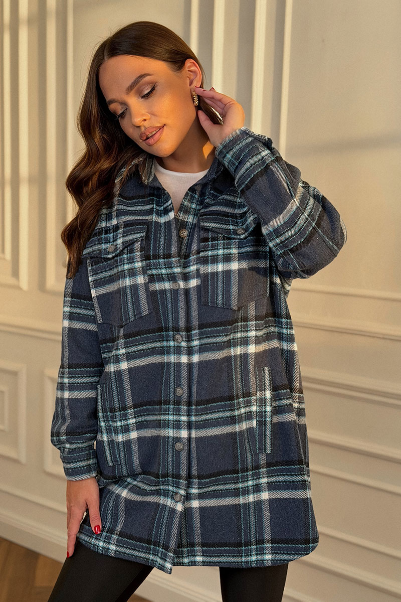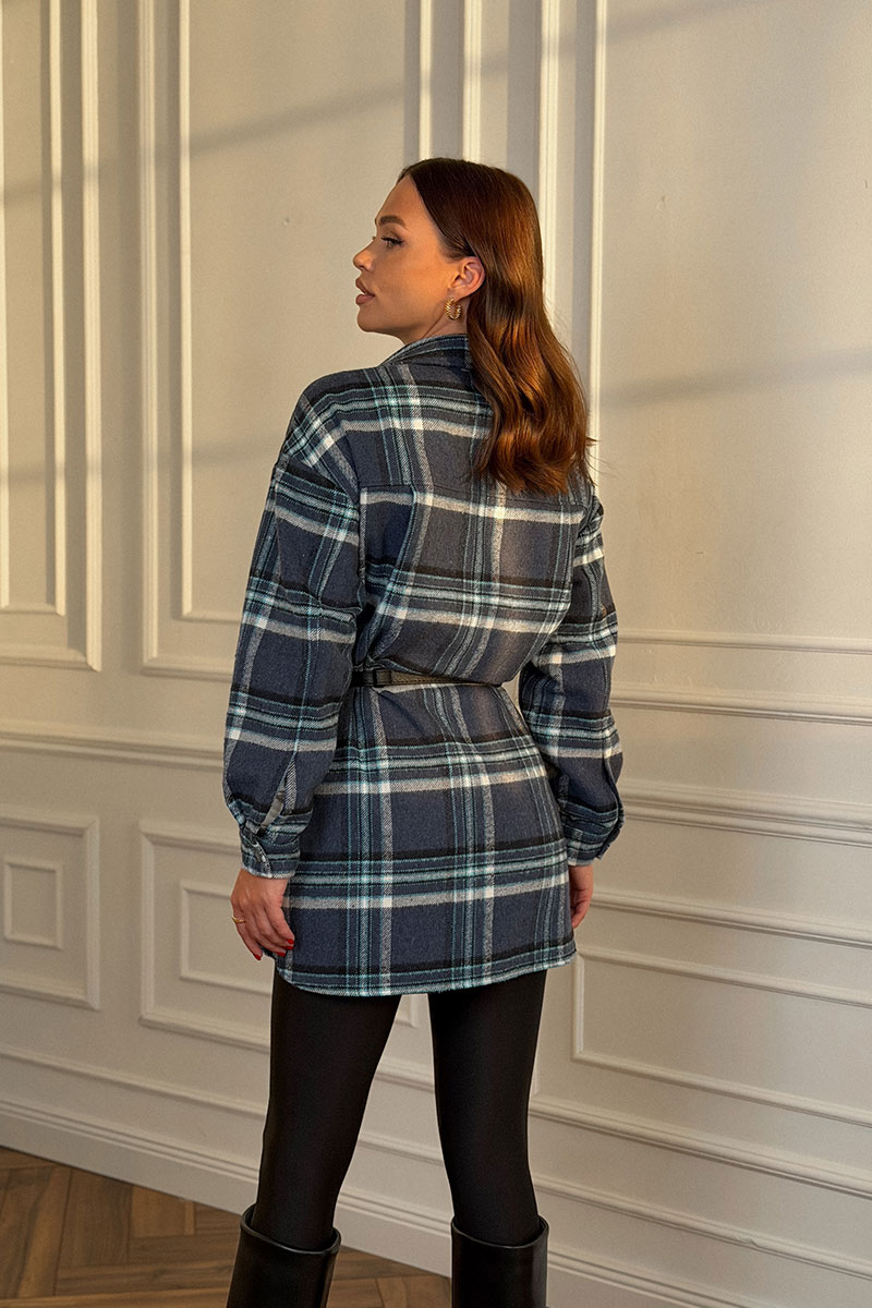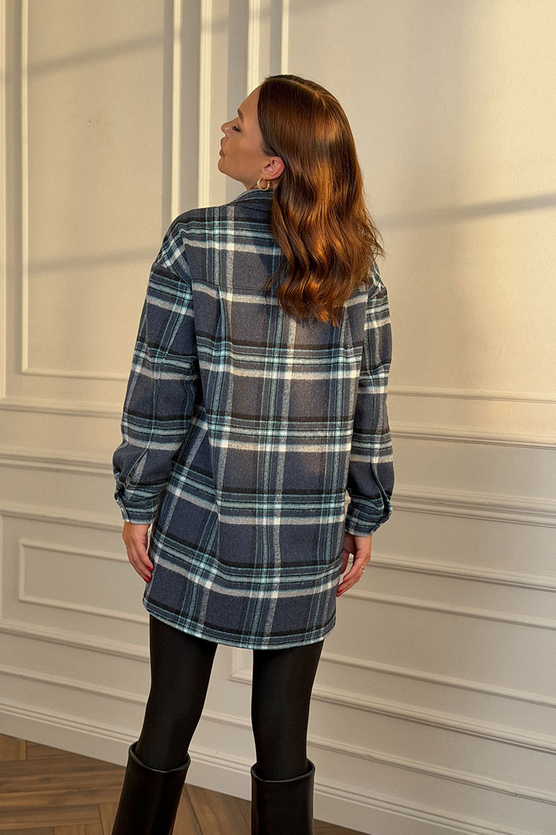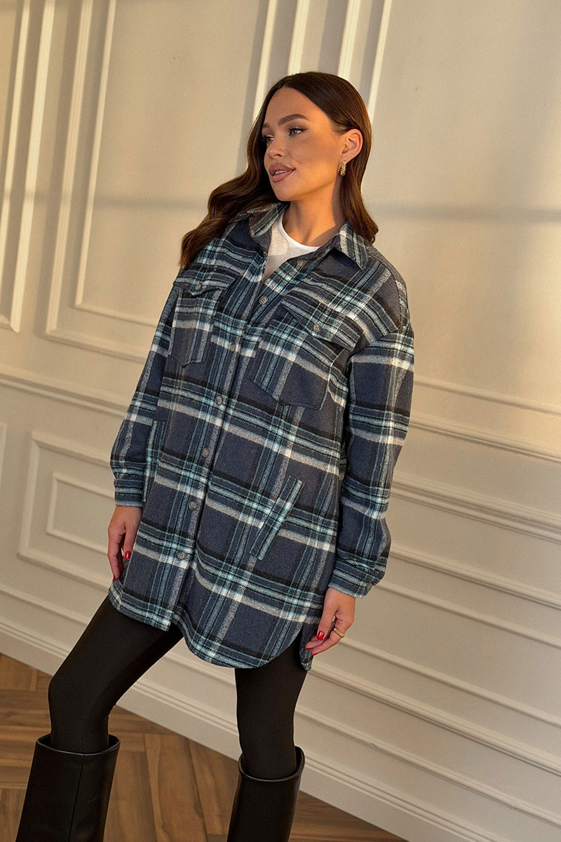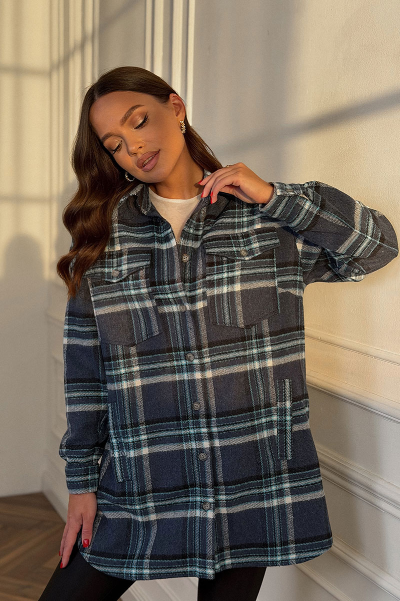 Рубашка женская, прямого свободного силуэта, со спущенной линией плечевого шва. Рубашка длинной ниже линии бедер. Спинка с отрезной кокеткой и двумя односторонними складками на нижней детали.