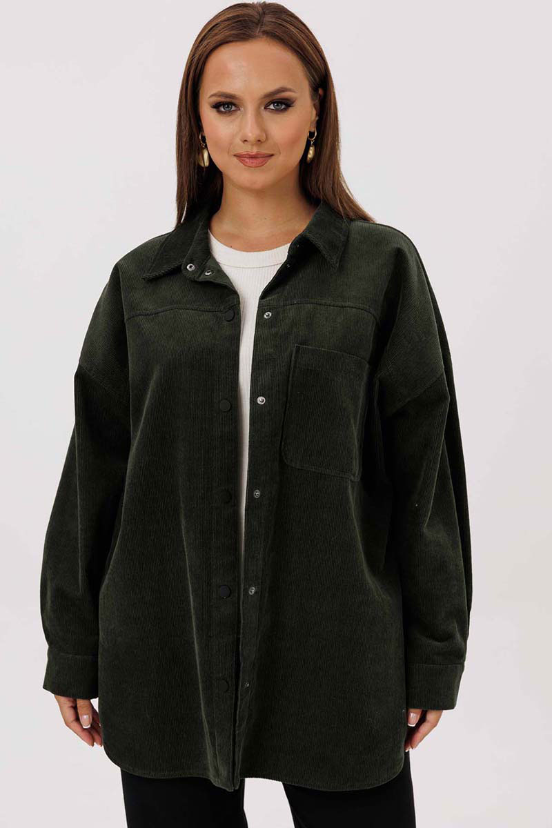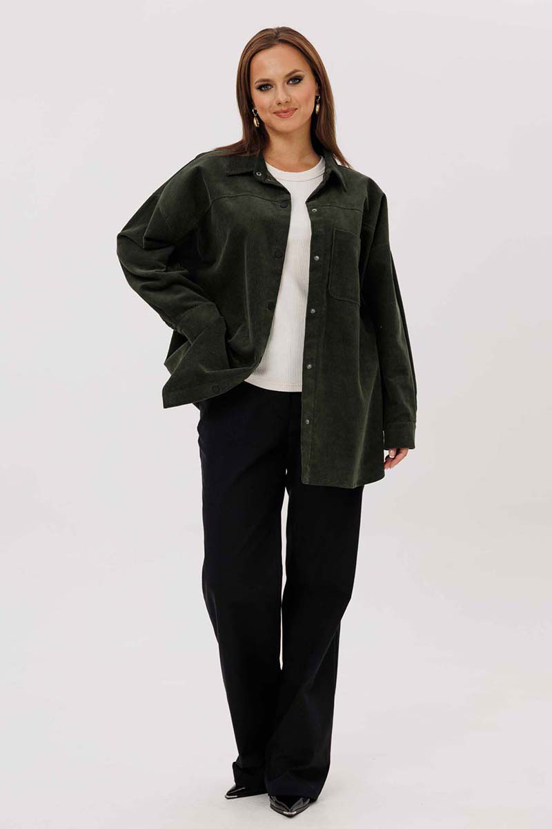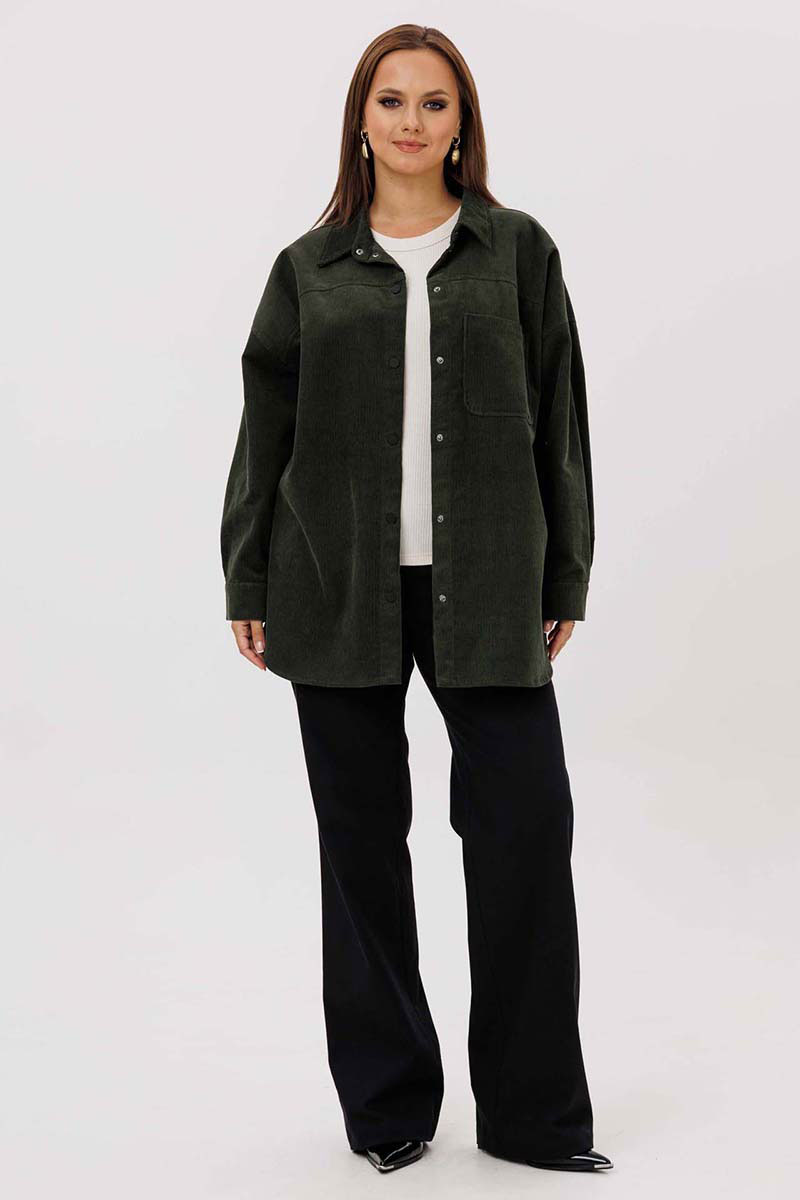 Блуза женская свободная прямого силуэта с разноуровневым низом со спущенными плечами. По переду кокетки, накладной карман и застёжка на 7 кнопок. По спинке кокетка и встречная складка. Воротник отложной на стойке. Рукава одношовные втачные на манжете.