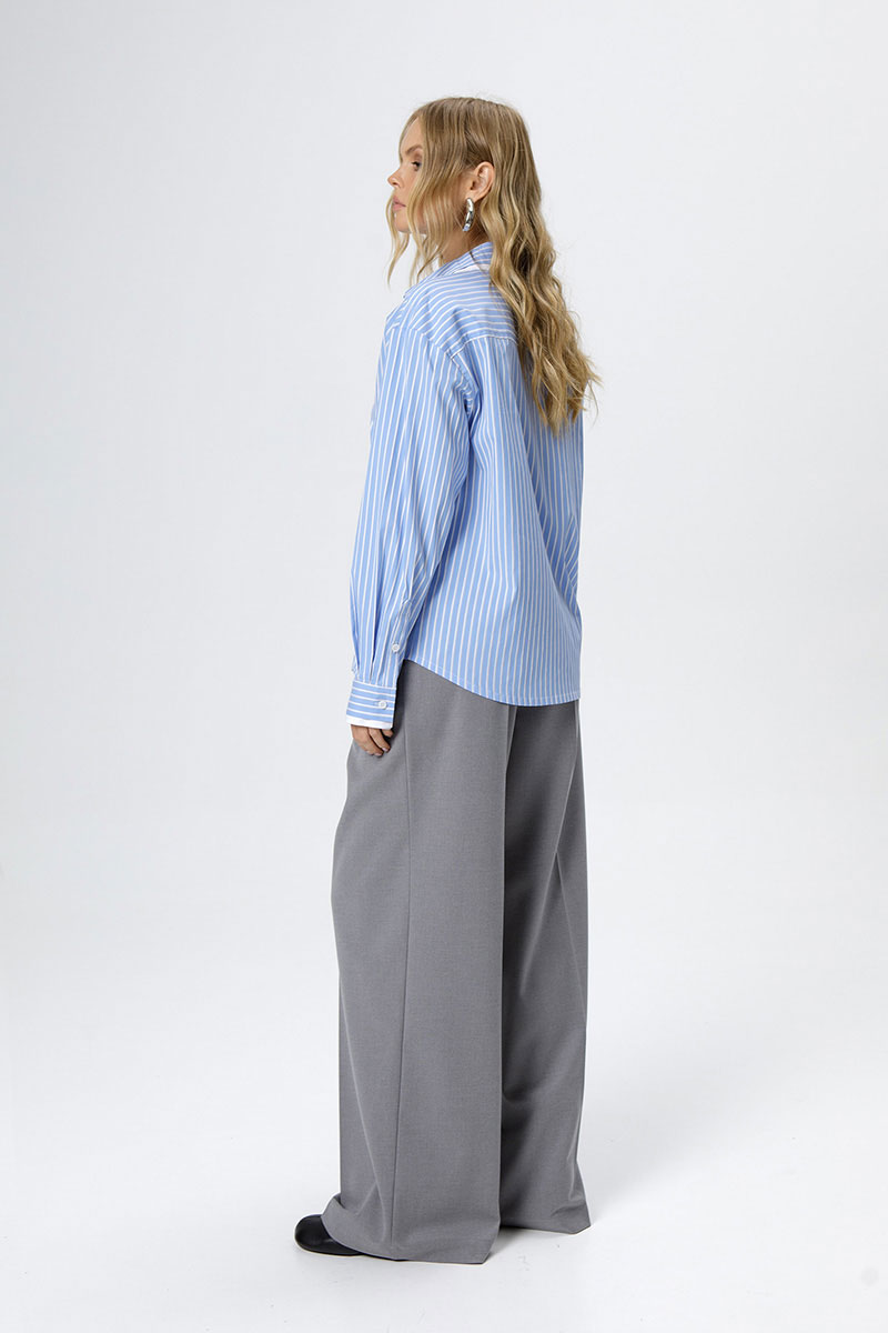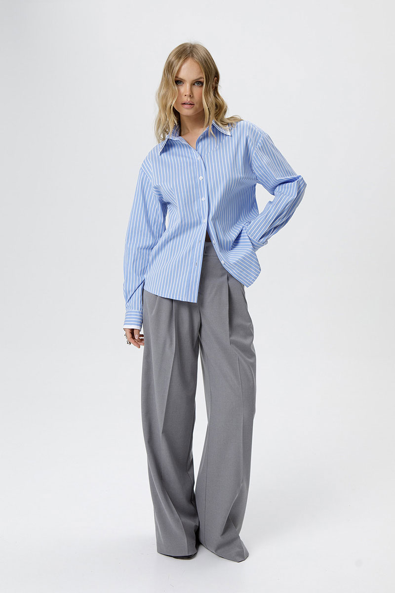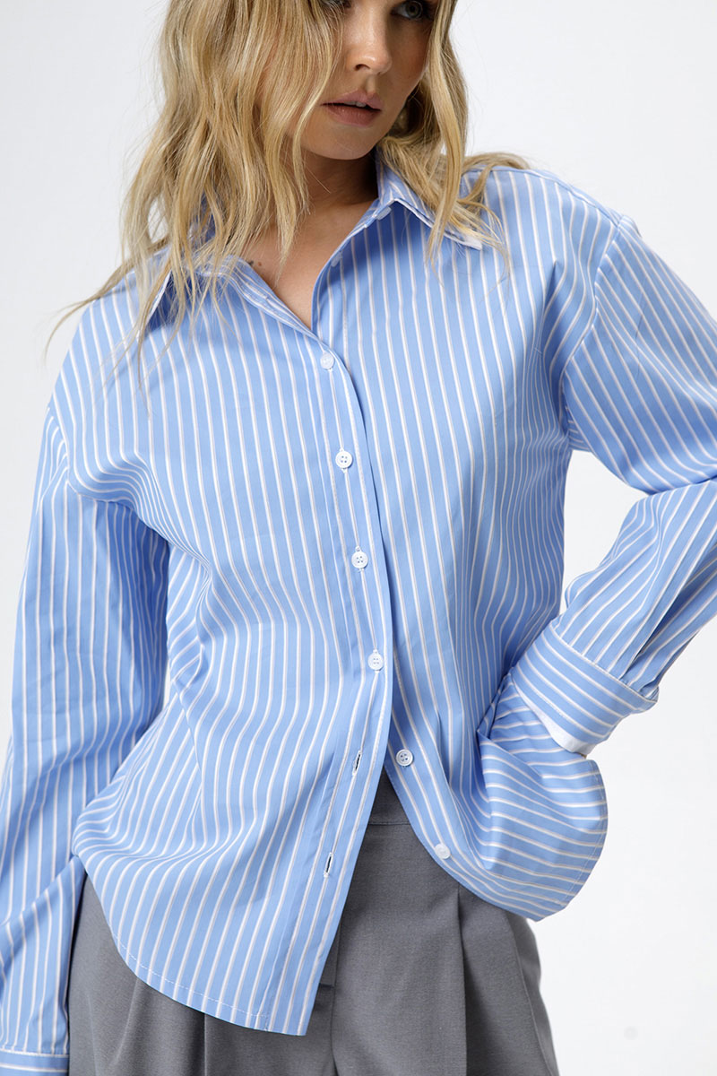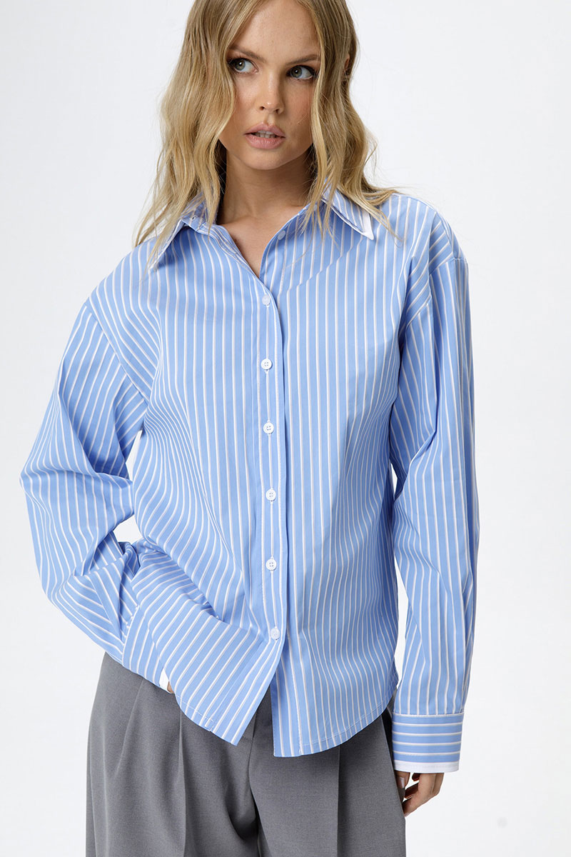 Хлопковая свободная рубашка в полоску с двойными воротниками и манжетами.