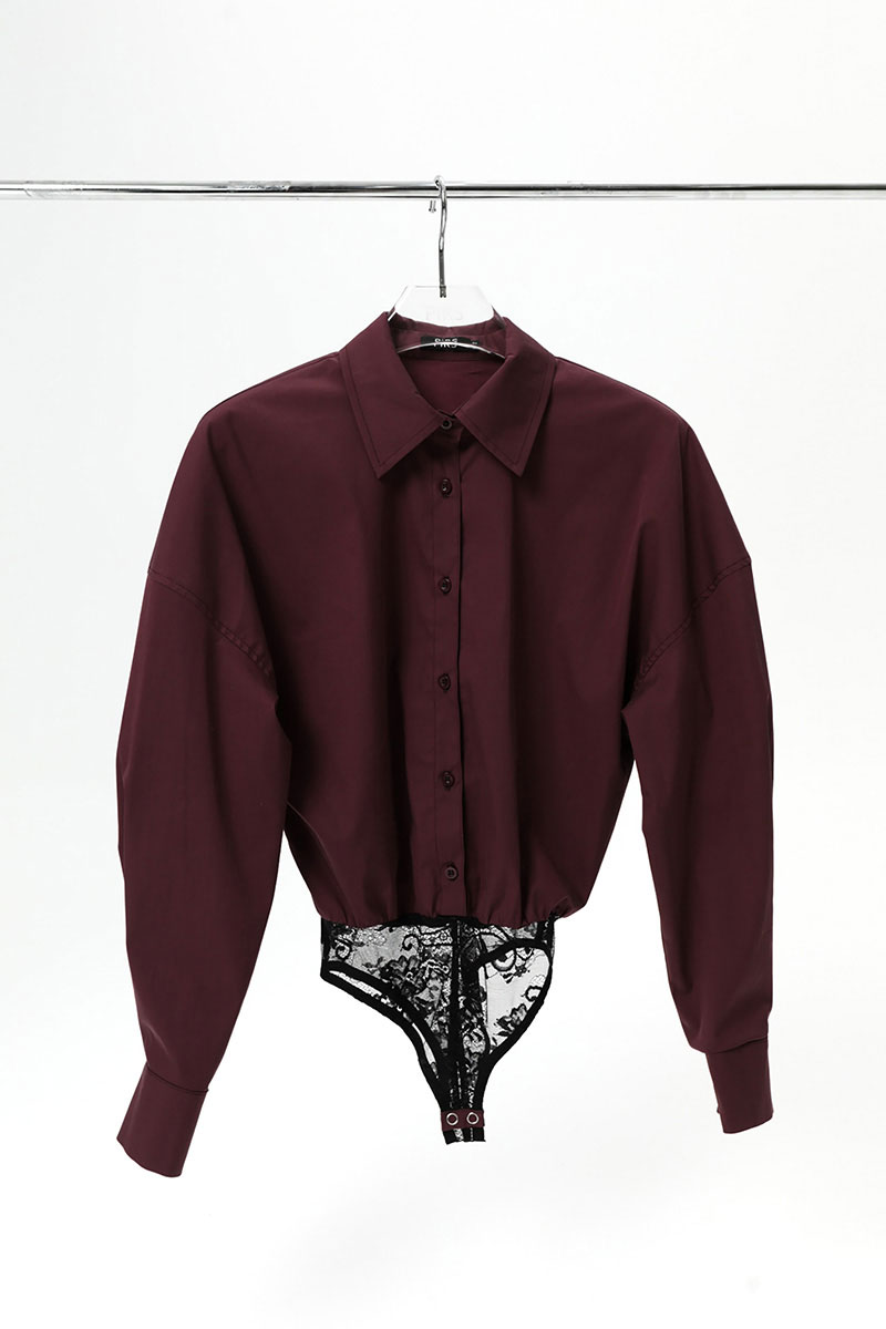 Хлопковая рубашка-боди с кружевными трусиками. Галстук входит в комплект.