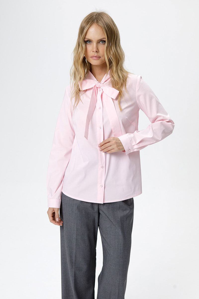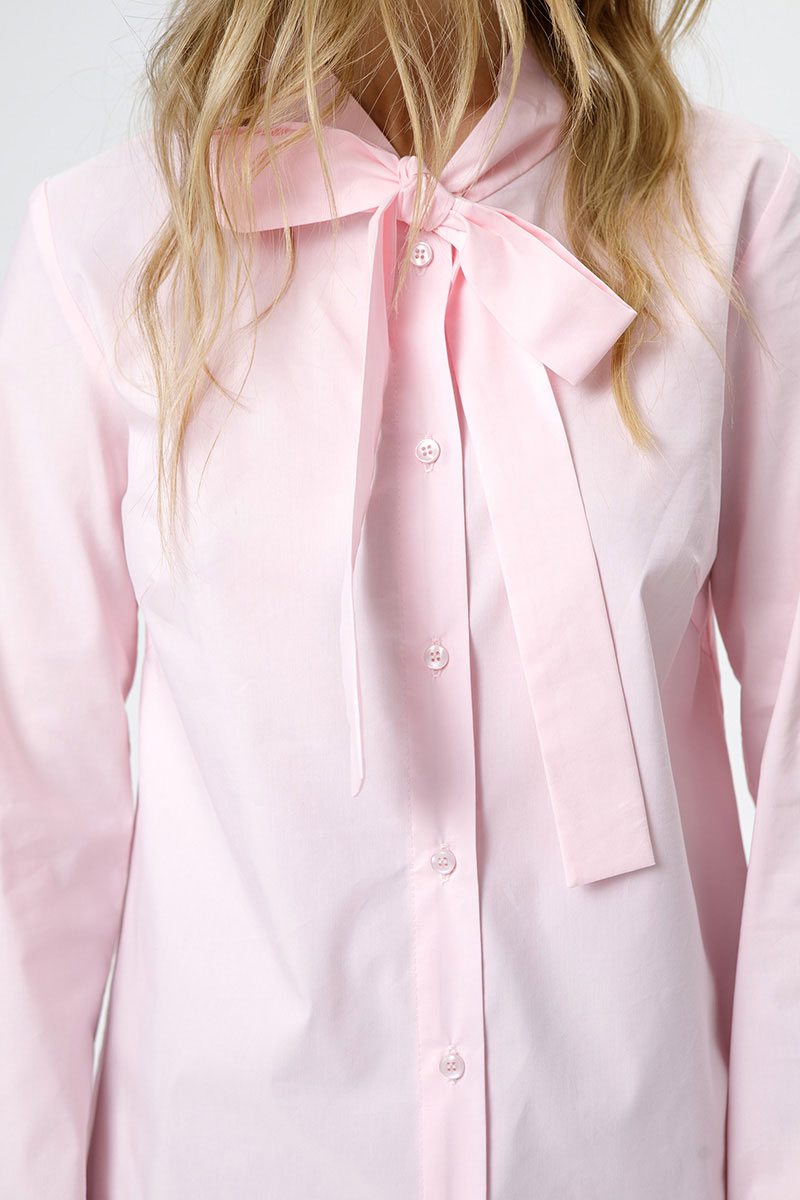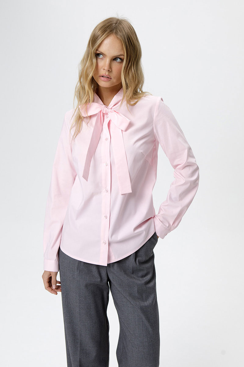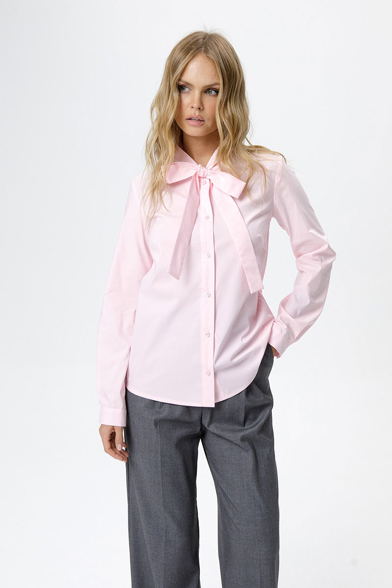 Хлопковая рубашка с воротником-бантом.