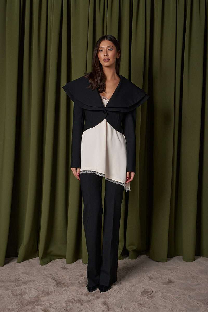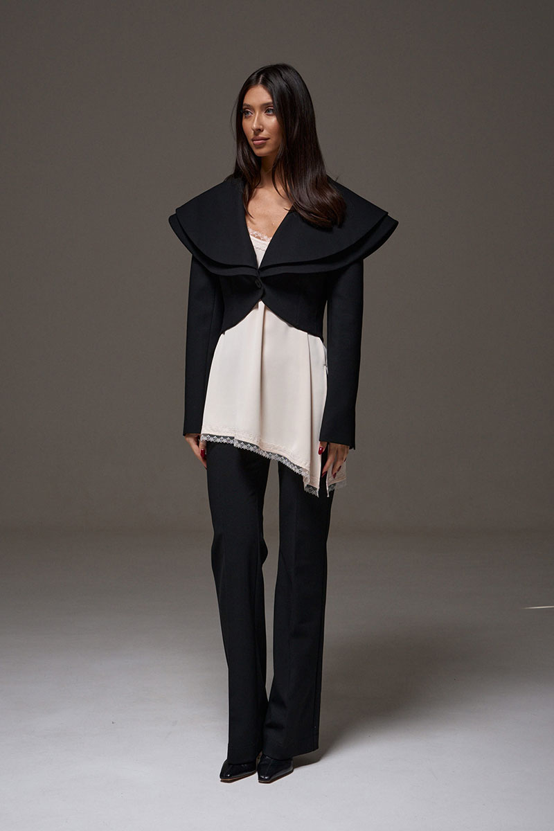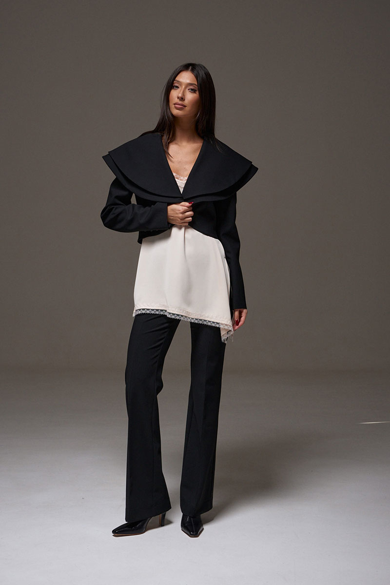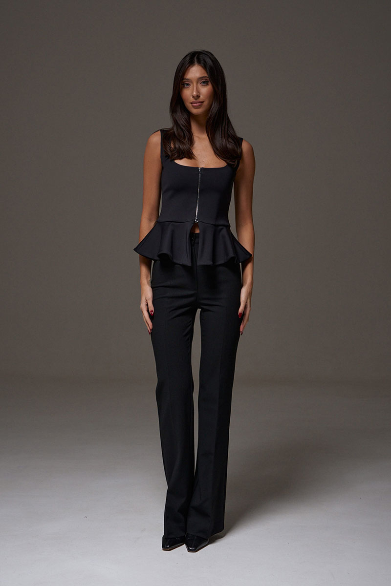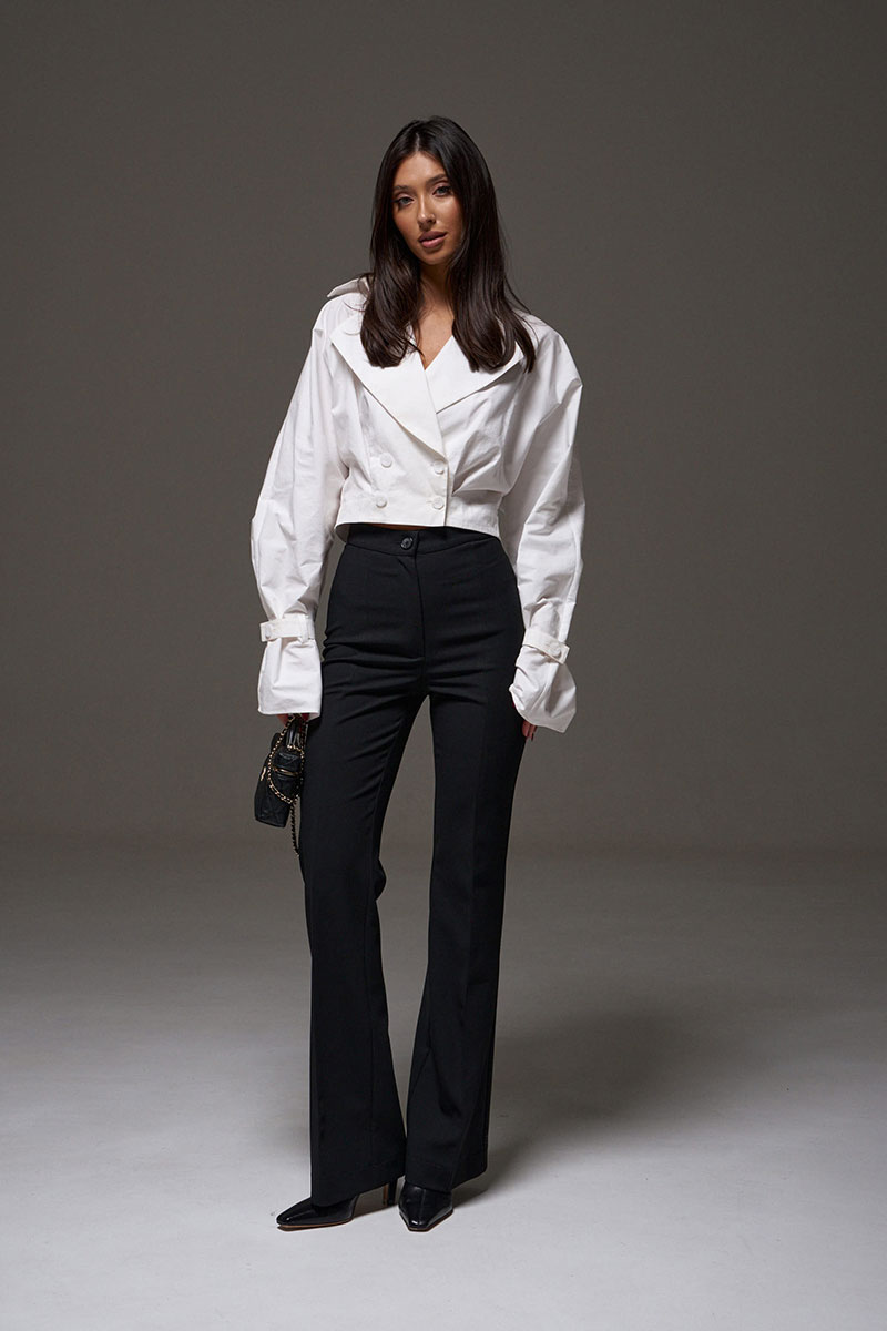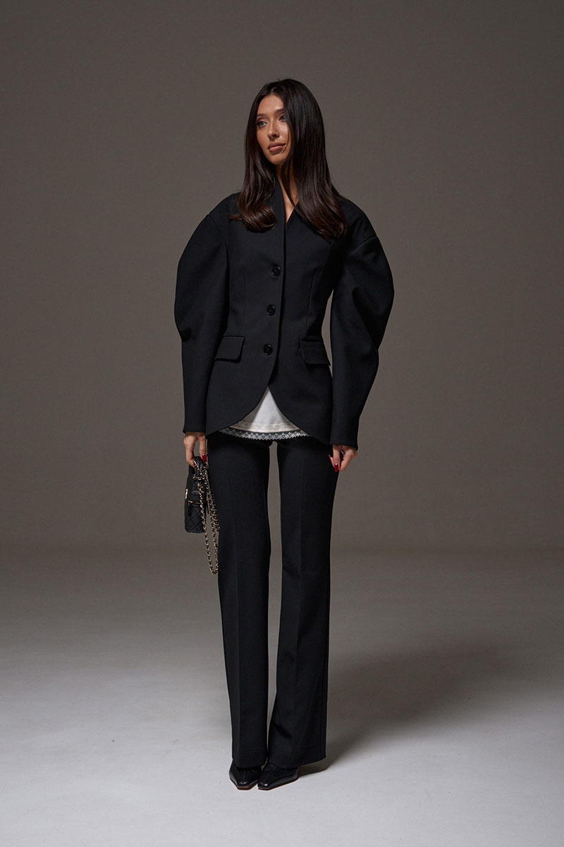 Брюки полуприлегающего силуэта с разведением к низу. Классические брюки базовый элемент гардероба. Идеально сочетаются с любым верхом. Характеристики: полуприлегающий силуэт, пояс стабильный, по переднему и заднему полотну брюк стрелки, по заднему полотну прорезные кармашки «обманки».