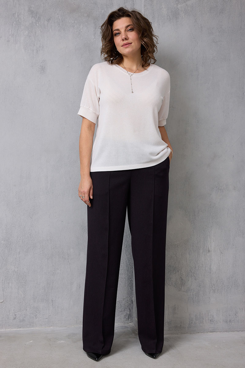 Если Вы хотите приобрести шикарные, базовые брюки, которые позволят создавать множество сочетаний, предлагаем Вашему вниманию модель, выполненную из приятного к телу слегка растяжимого текстиля, который подарит невероятный комфорт в носке. Благородный оттенок «чёрный баклажан» смотрится изысканно и дорого. Брюки прямого кроя с застроченными стрелками сделают Ваши ножки бесконечно длинными! Модель изумительно стройнит и вытягивает силуэт благодаря выверенным лекалам и отличной посадке. Пояс модели выполнен на резинке с островком. По бокам брюк - карманы хулиганы.