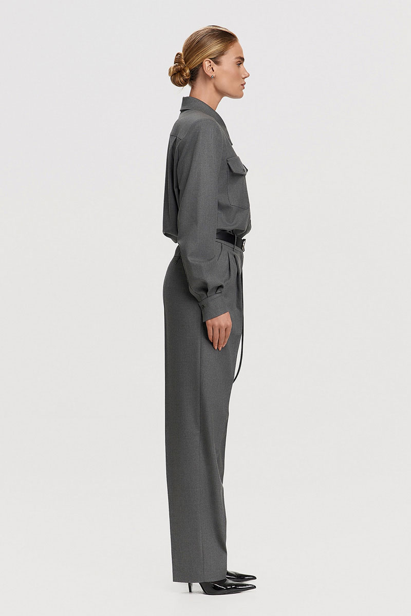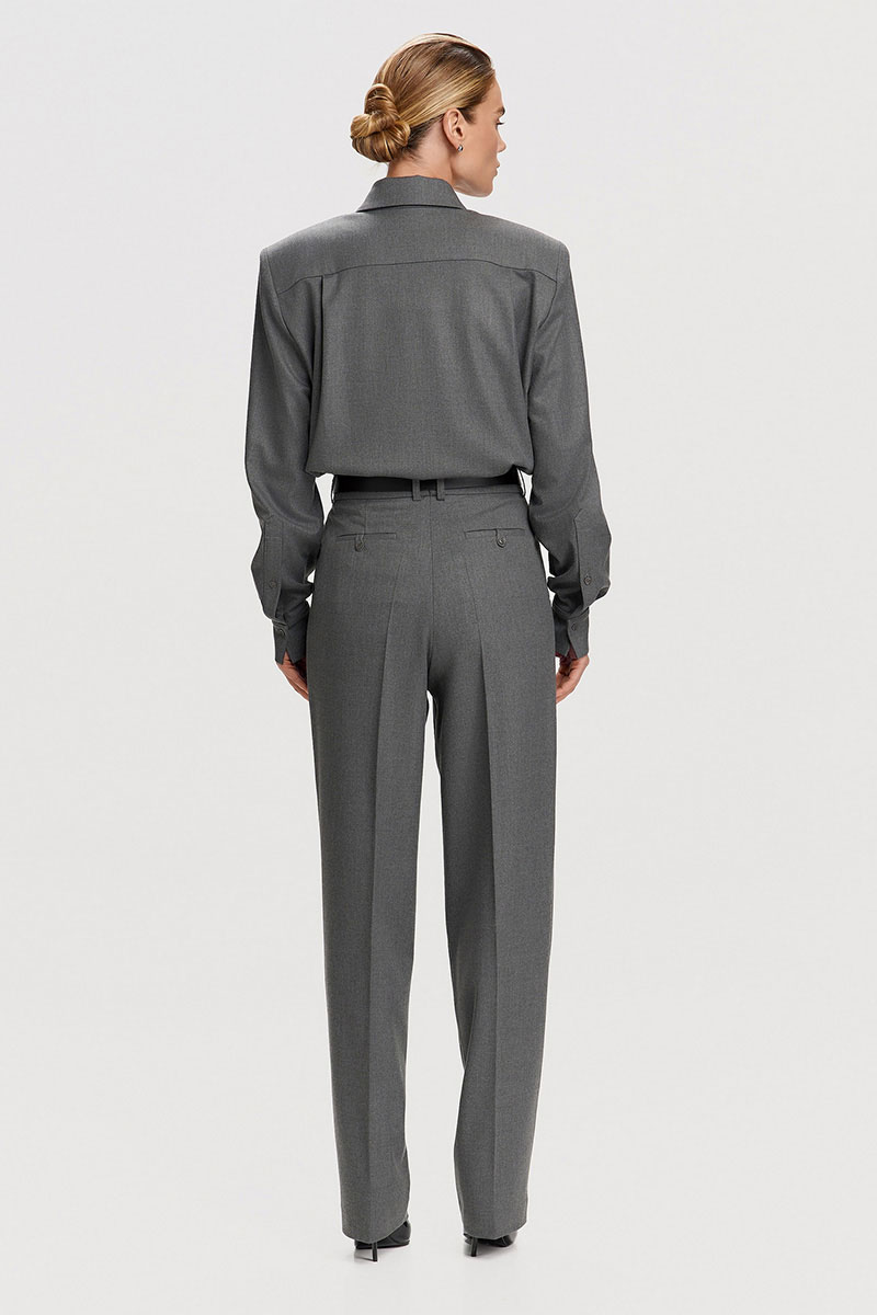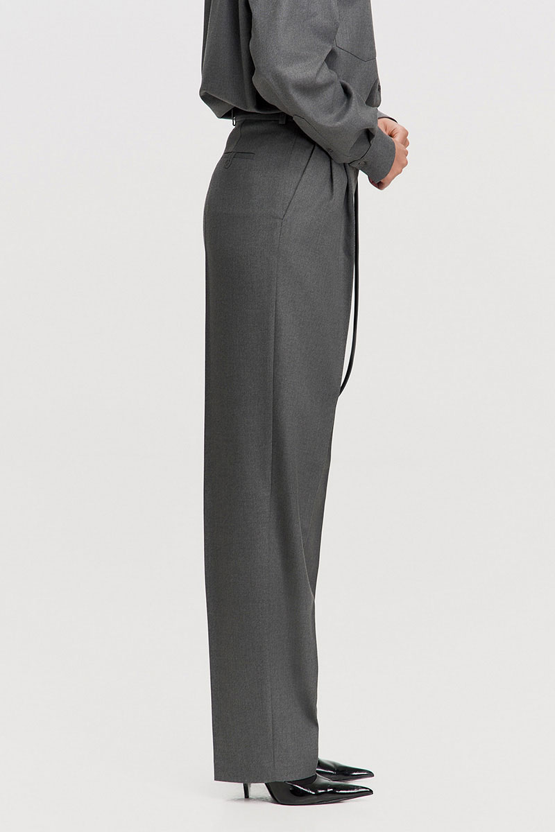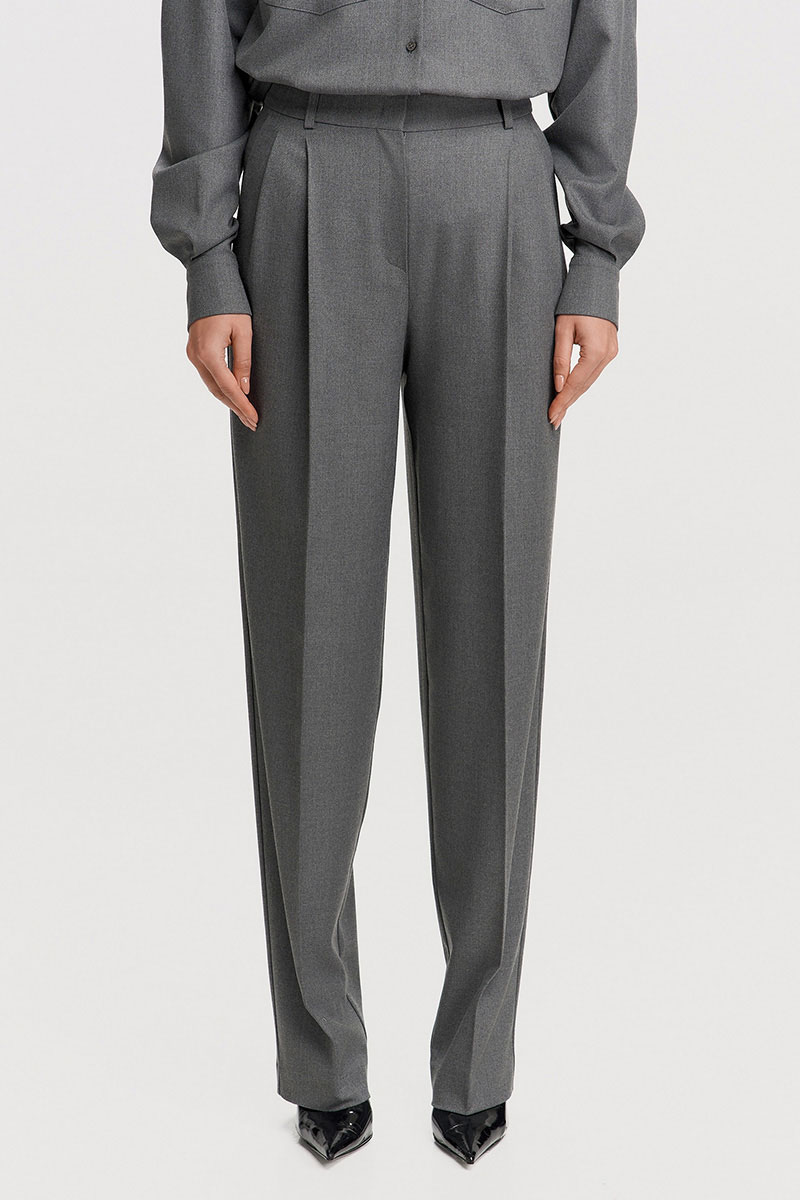 Классические прямые брюки, слегка зауженные книзу, из плотного полотна с добавлением вискозы. Брюки на поясе со шлевками. Посадка на талии, спереди заложены складки для дополнительного объема. По переду брюк наклонные карманы, на задних частях прорезные карманы с листочкой и навесной петлей. Универсальная модель и длина брюк позволяет создавать разнообразные образы — от строгого офисного до повседневного городского. Брюки идеальный компаньон для рубашки арт. 6060. Измерения готового изделия расположены в табличке с фотографиями. Параметры модели на фото (см): 90/65/95, размер: 44/S, рост: 175 см.