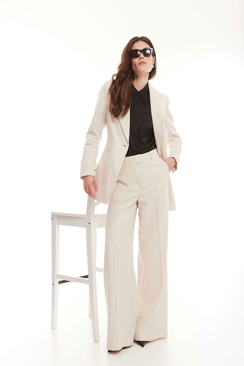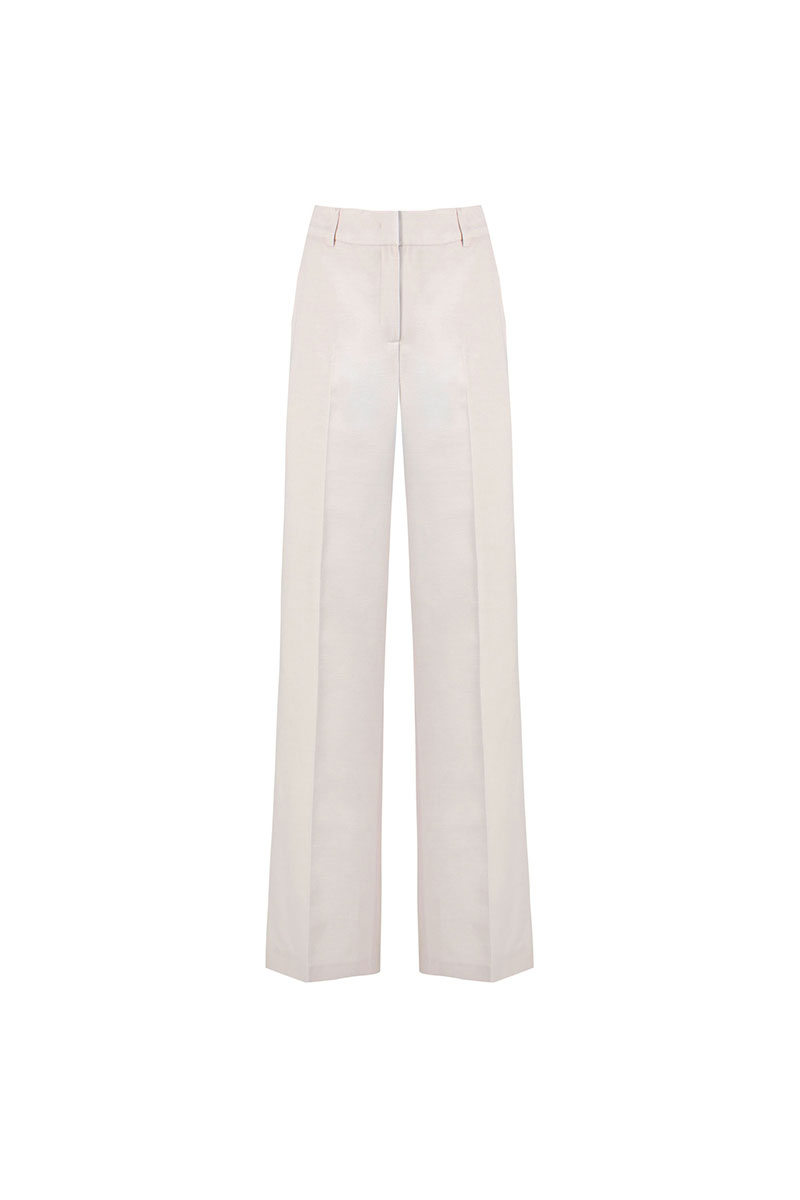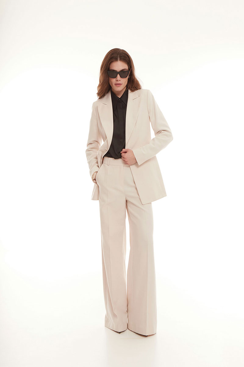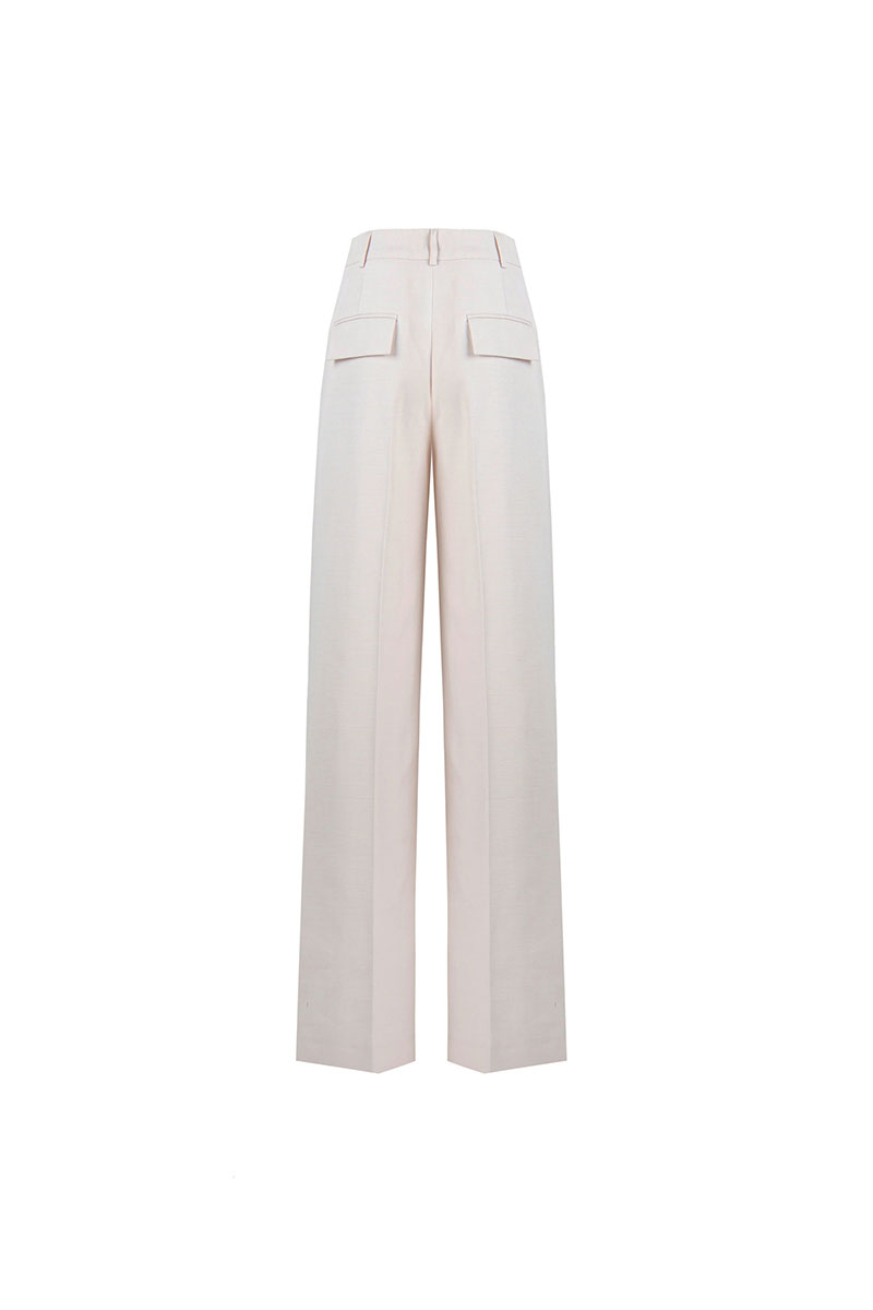 Брюки женские, прямого силуэта. По передним половинкам боковые карманы. На задних половинках фиктивные карманы с клапаном и 2 обтачками. Застежка на молнию, крючок и пуговицу.