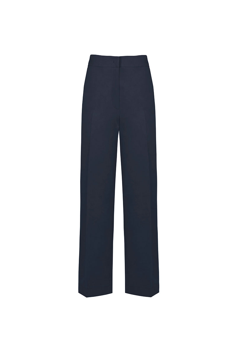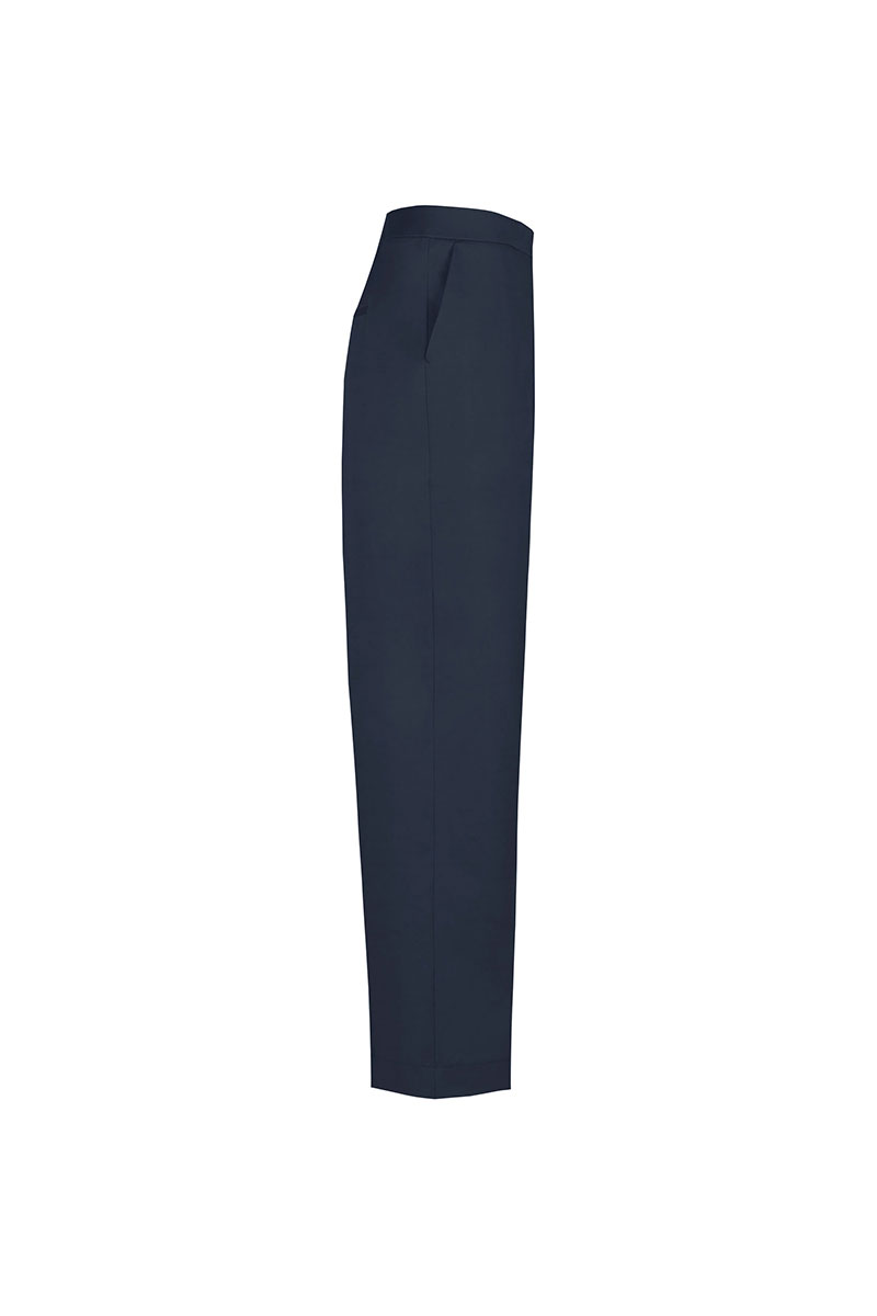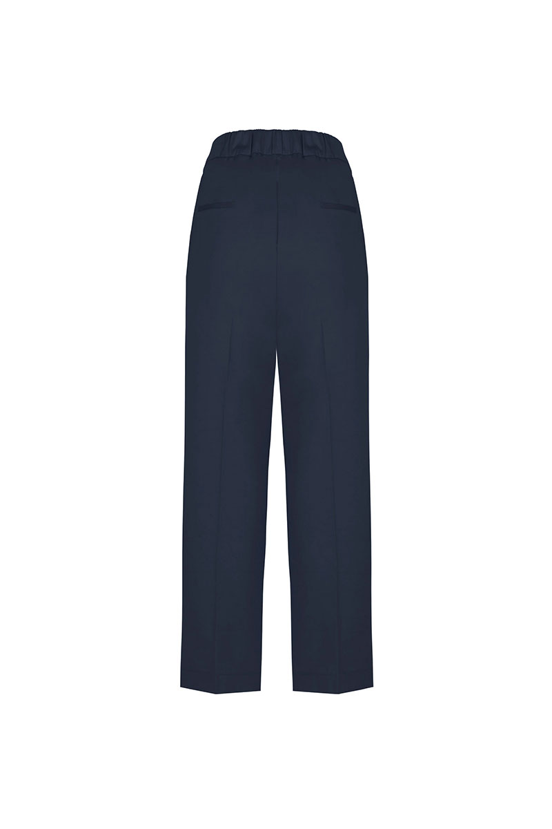 Брюки женские, зауженные к низу, длиной по щиколотку. Перед с наклонными боковыми карманами. Спинка с фиктивными карманами с листочкой. Пояс притачной, по спинке на резинке. Застежка на брючный крючок и потайную пуговицу.