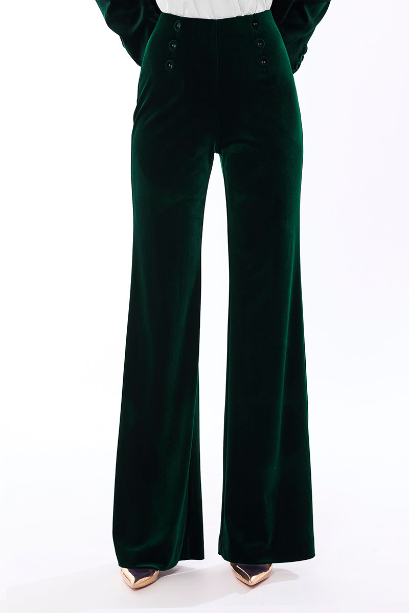 Цветовая гамма для верха, подкладки, фурнитуры, отделки: брюки выполнены из велюровой ткани в одной цветовой гамме.