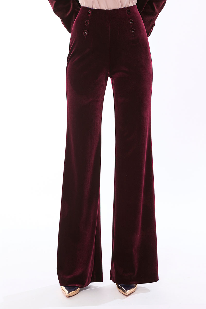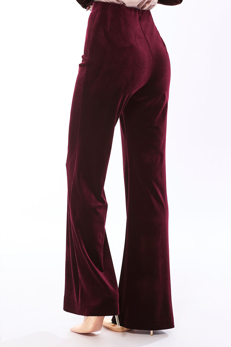 Цветовая гамма для верха, подкладки, фурнитуры, отделки: брюки выполнены из велюровой ткани в одной цветовой гамме.