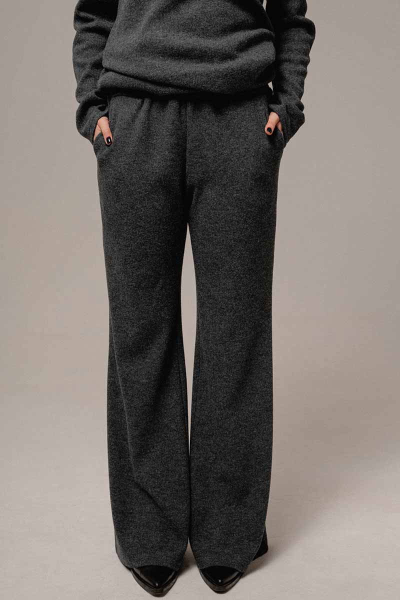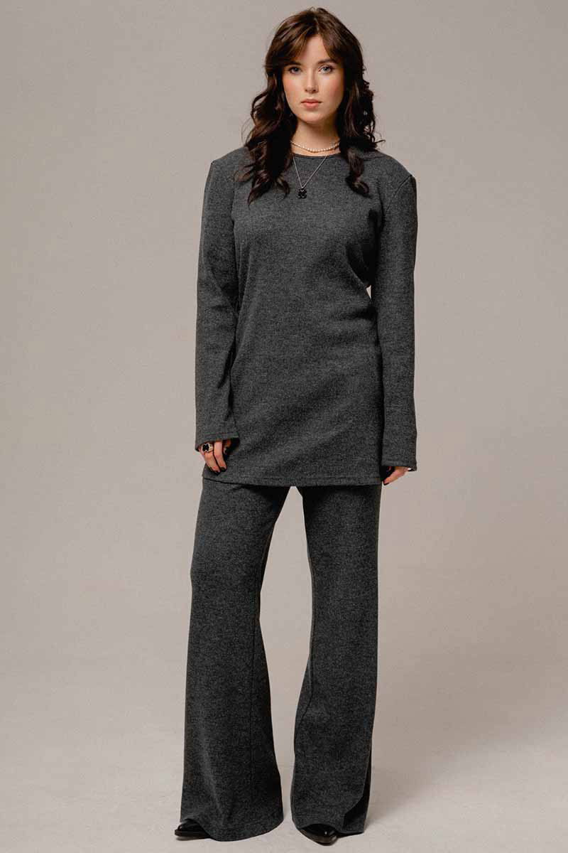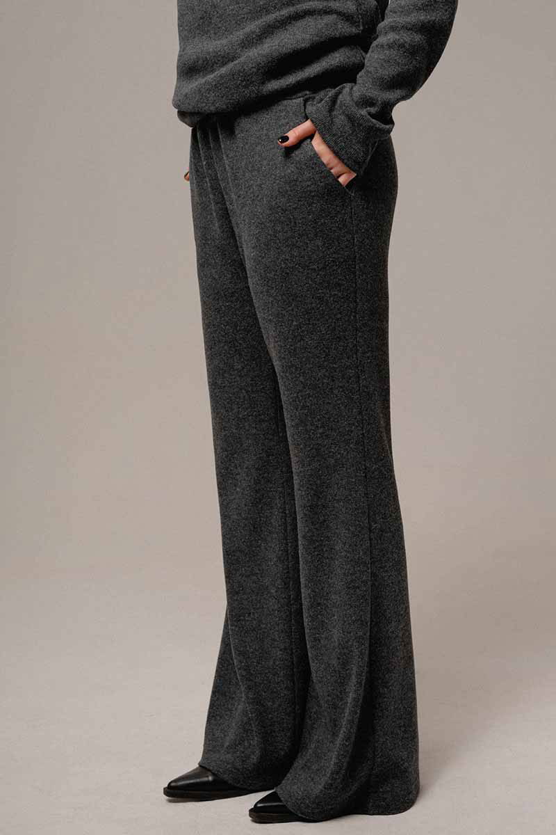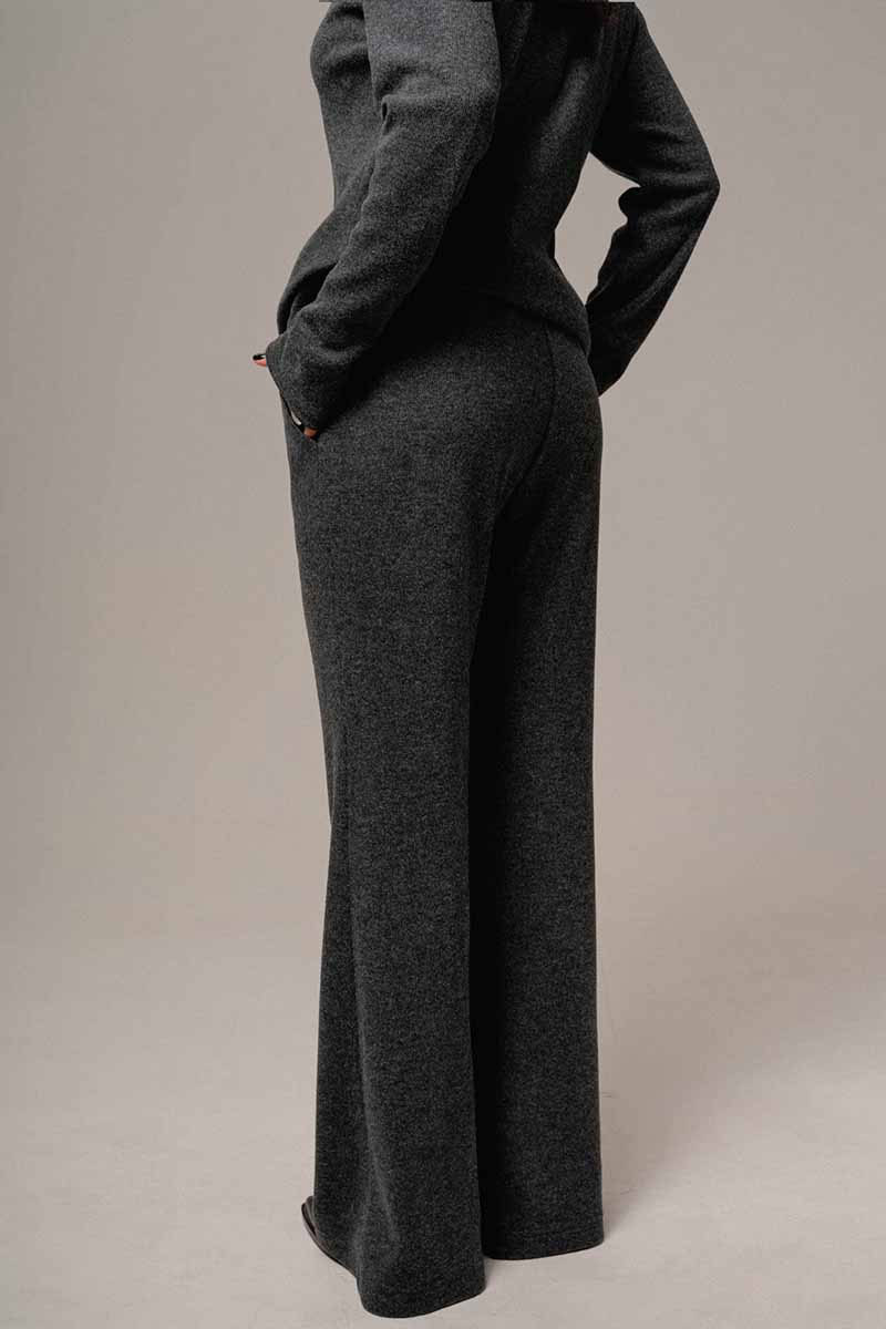 Брюки молодежные из трикотажного полотна силуэта "рыбка" с заужением к колену и расширением к линии низа на притачном поясе с эластичной тесьмой и наклонными карманами спереди.
