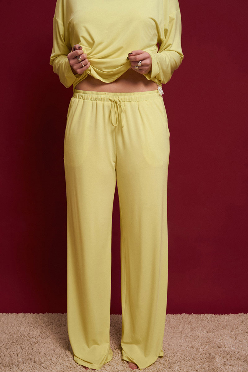 Брюки молодежные прямого силуэта изтрикотажного вискозного полотна - однотон, на притачном поясе с эластичной тесьмой,шнурок, и наклонными карманами спереди, и иммитацией гульфика.