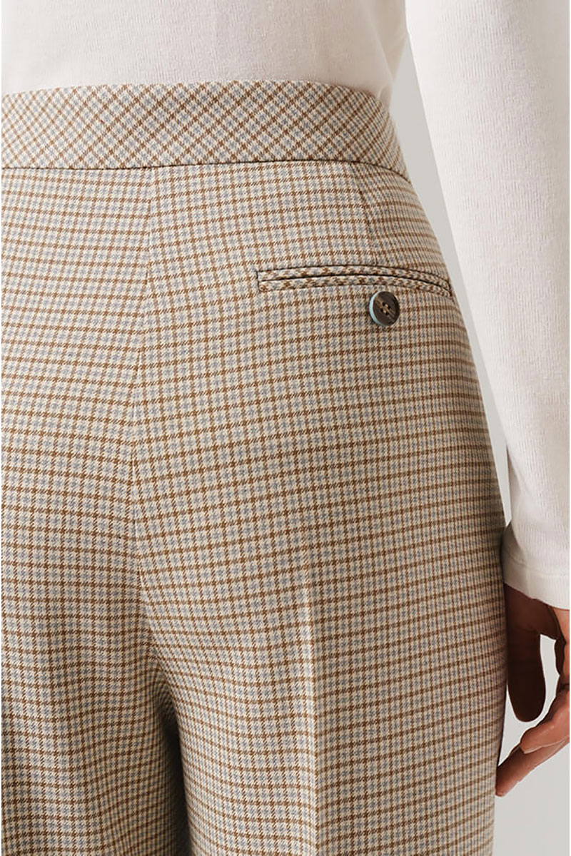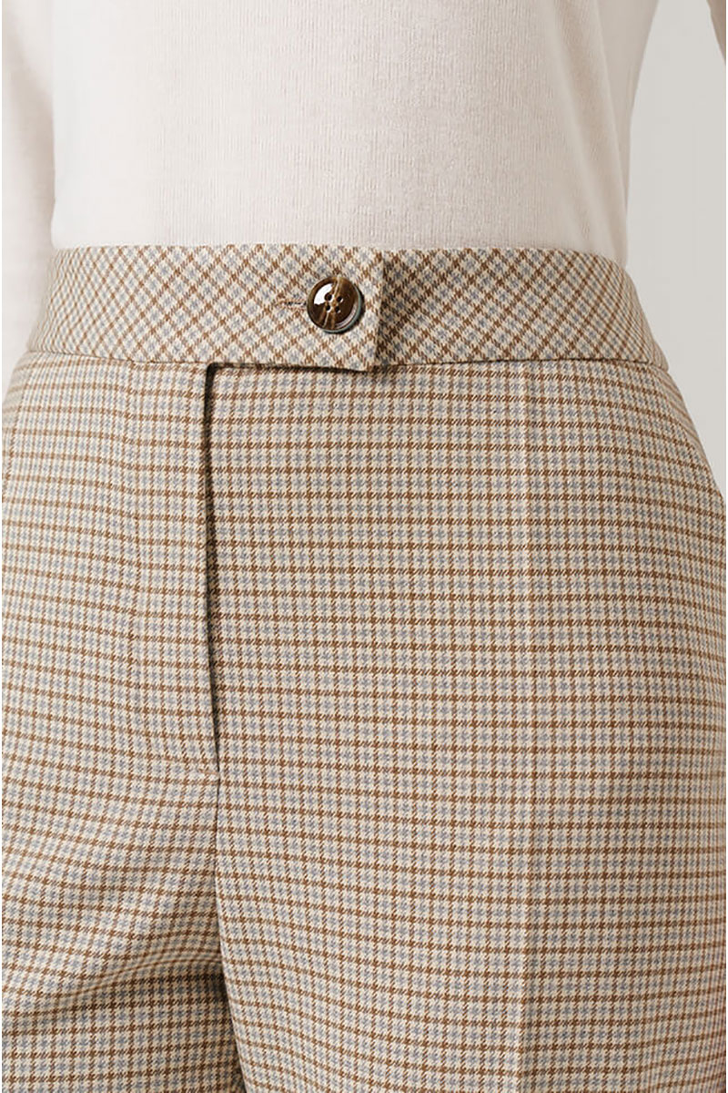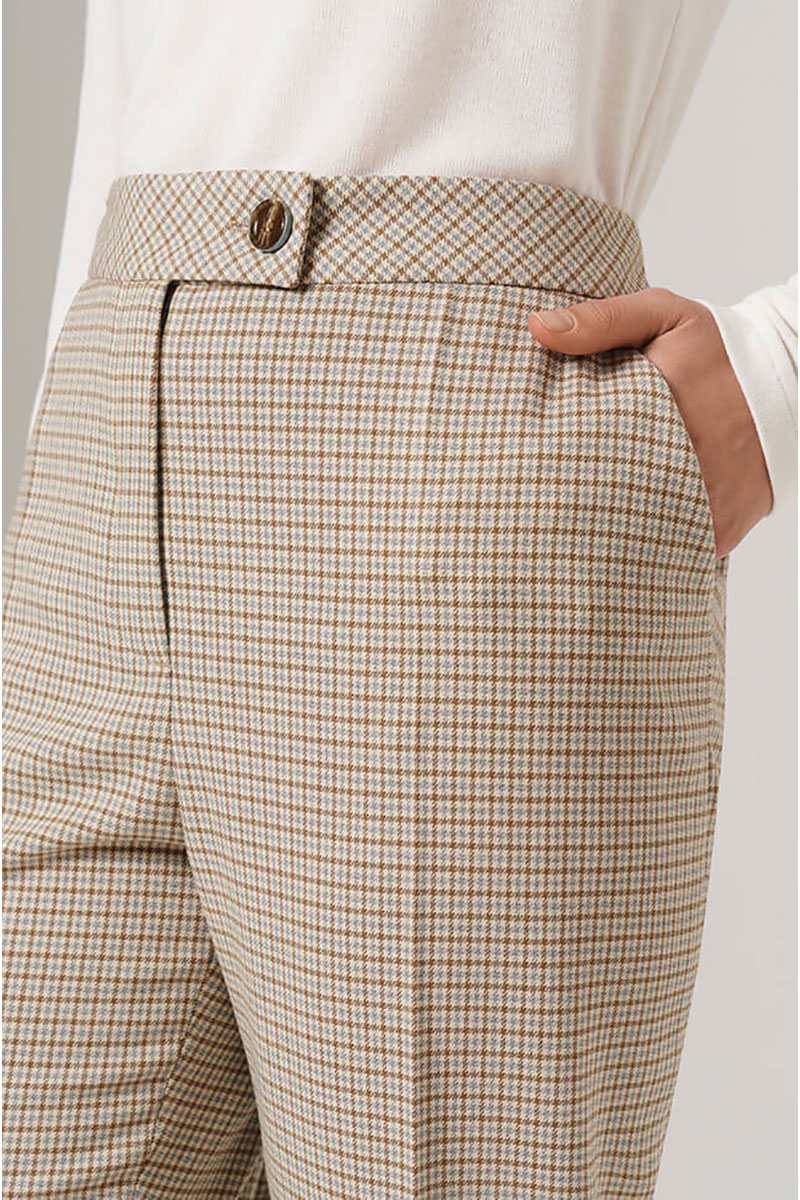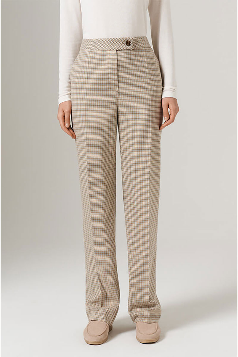 Женские брюки прямого силуэта - это идеальное дополнение к вашему повседневному гардеробу. Брюки изготовленные из высококлассного клетчатого костюмного полотна с добавлением вискозы. Состав ткани подобран таким образом, чтобы обеспечивать отличные потребительские свойства: прочный материал сохранит первоначальную форму и цвет на долгие годы. Удобный притачной пояс дополнительно оборудован небольшими шлевками, что позволяет использовать ремешок подходящего размера. Особенно интересной деталью являются стрелки, которые придают брюкам изысканность. Они начинаются в шве пояса и переходят в нижнюю часть брюк, подчеркивая вертикальную линию и создавая визуальное удлинение фигуры. Надежная и удобная застежка состоит из молнии, дополненной специальной потайной пуговицей и декоративной роговой пуговицей на опясе. Практичные и глубокие боковые карманы облегчат хранение нужных мелочей. Сзади имеется имитация кармана с листочкой и роговой пуговицей. Стильный дизайн и удобный крой брюк делают их незаменимым элементом гардероба, который легко сочетается с разнообразными верхами и обувью. Их удобство и стиль делают их прекрасным дополнением к Вашей гардеробной коллекции! С любовью и заботой о Вас, компания NELVA!
