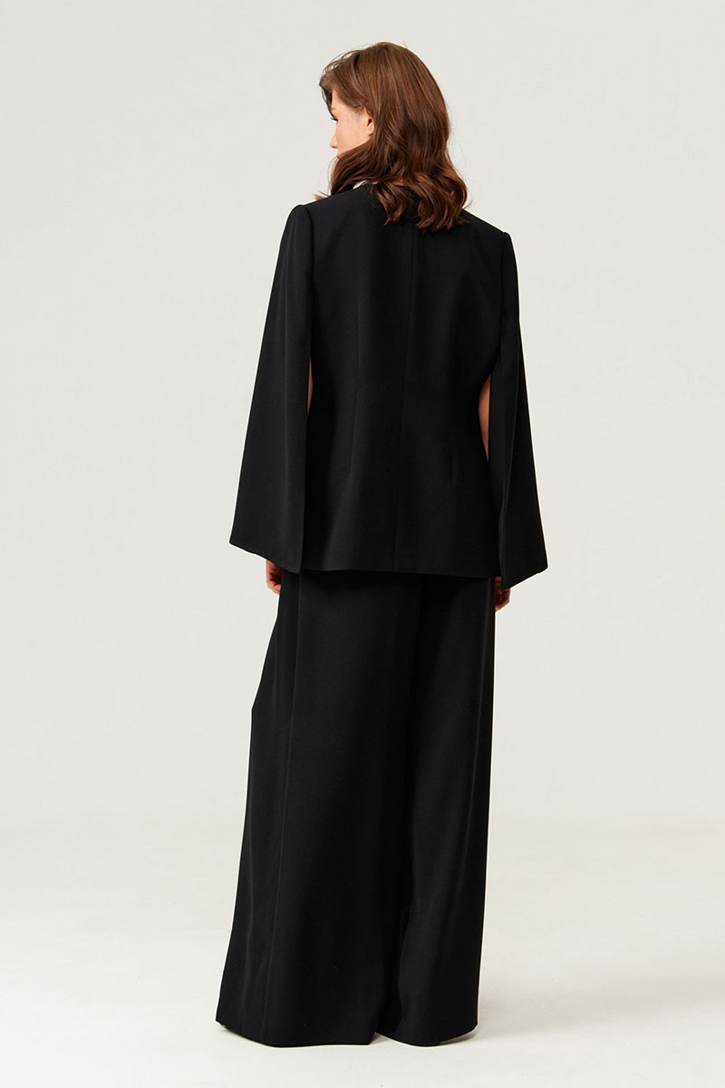 Эти женские брюки выполнены из струящейся ткани и предназначены для повседневной носки либо торжественных случаев. Модель обладает свободным кроем, обеспечивающим комфорт и свободу движений. Верхний срез брюк обработан на внутренней резинке, что создает удобную посадку и позволяет регулировать объем по талии. Такие брюки отлично подходят для создания легких, стильных образов в повседневной жизни и легко сочетаются с различными топами и обувью.