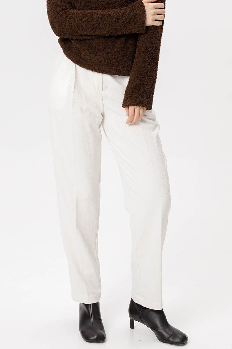 Укороченные классические брюки со стрелками из фактурной ткани «букле».