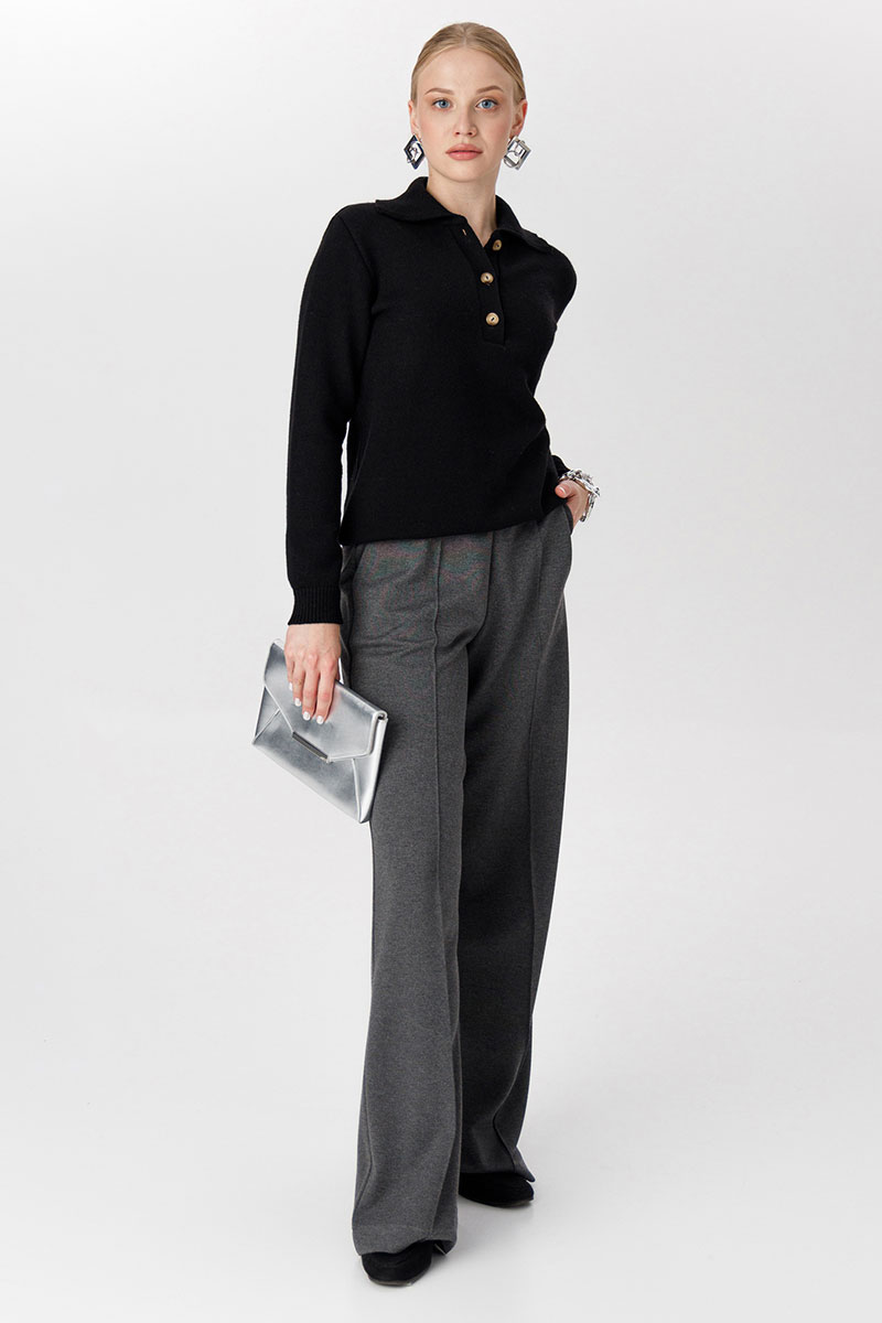 Стильный дизайн: Широкие штанины и элегантный крой делают эти брюки универсальными и подходящими для любого случая.